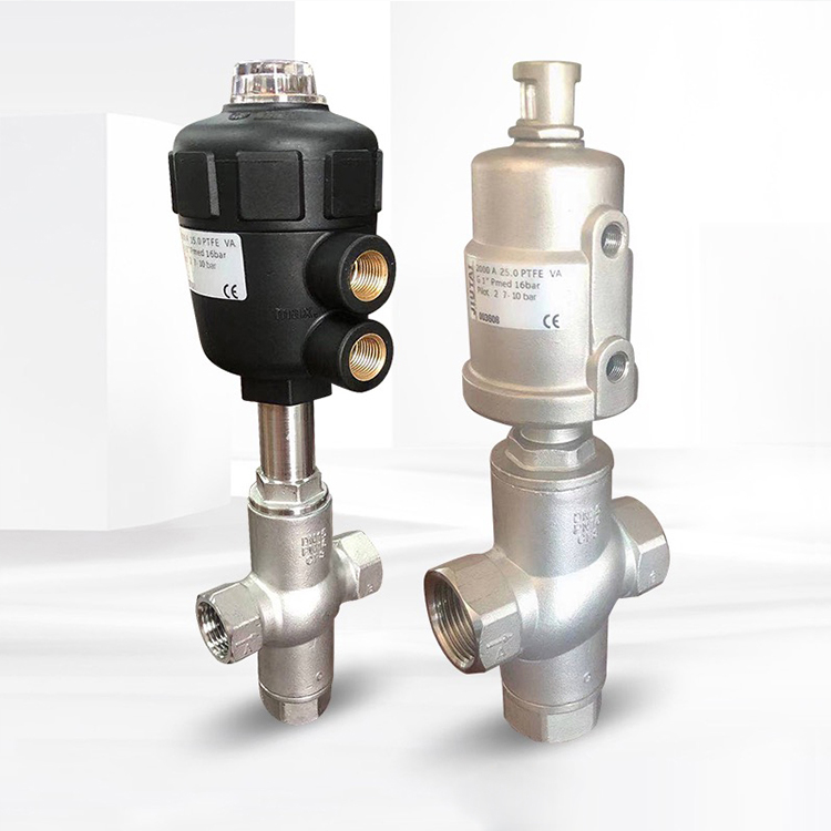 The angle seat valve maintains the flow rate to save space. It uses a single-acting pneumatic actuator with spring safety to operate the steering angle seat valve. When used, it should be normally open or normally closed.The product is made of stainless steel and Teflon. It can be used in most gases, liquids, steam and corrosive applications. It has a radiator to protect the actuator, It ensures a long life of the valve.