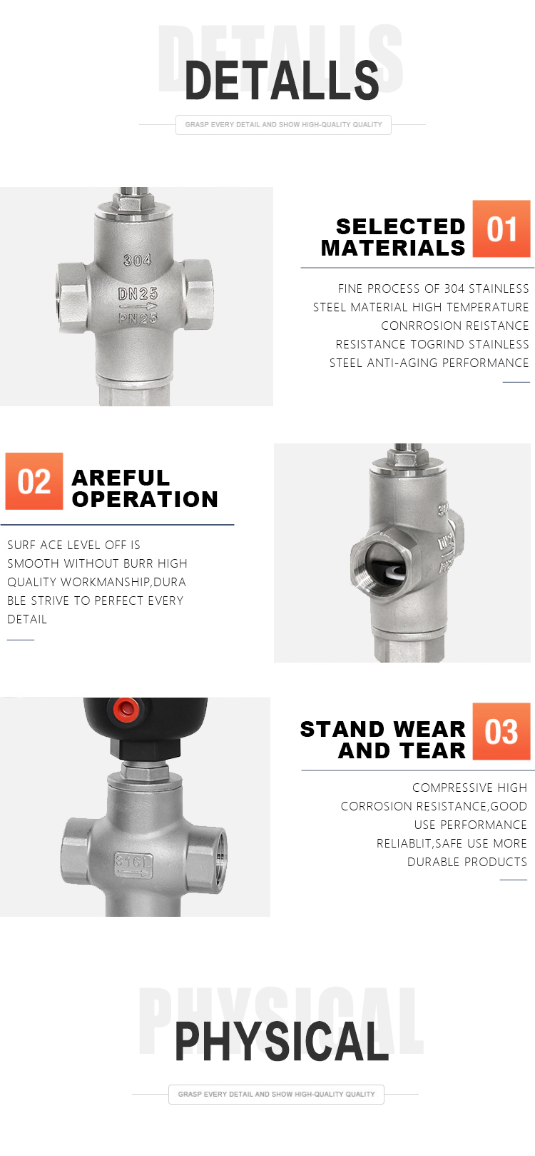 | 3 | 304 | 1"-DN25 | 1.5kg | Action Φ50 |