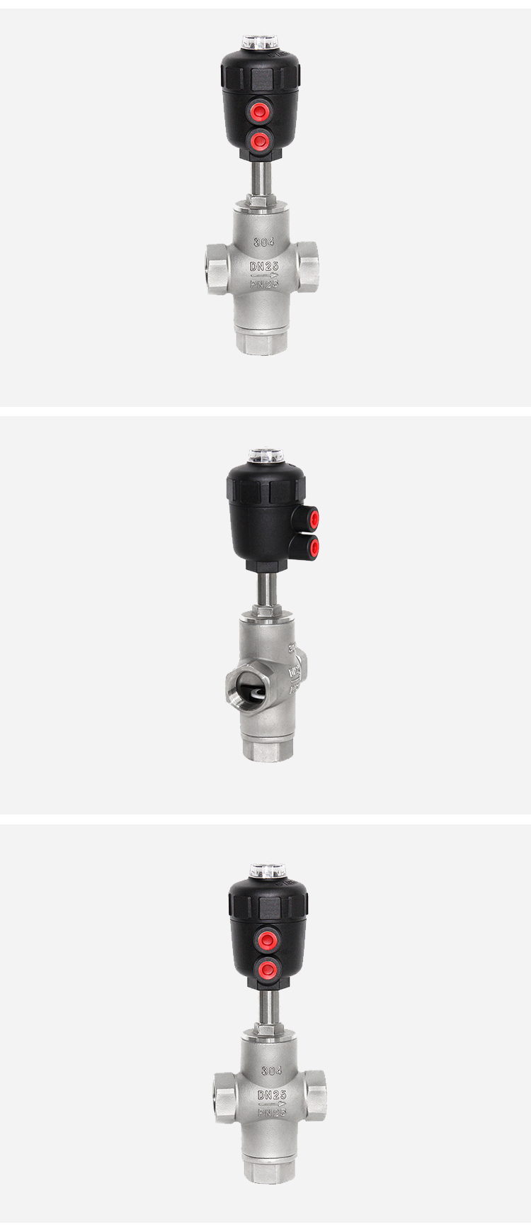 Product name:YOULI Stainless Steel Steam High Temperature 1.6mpa 304 316 BSP NPT T Type Pneumatic 3 Way Female Threaded Angle Seat Valve