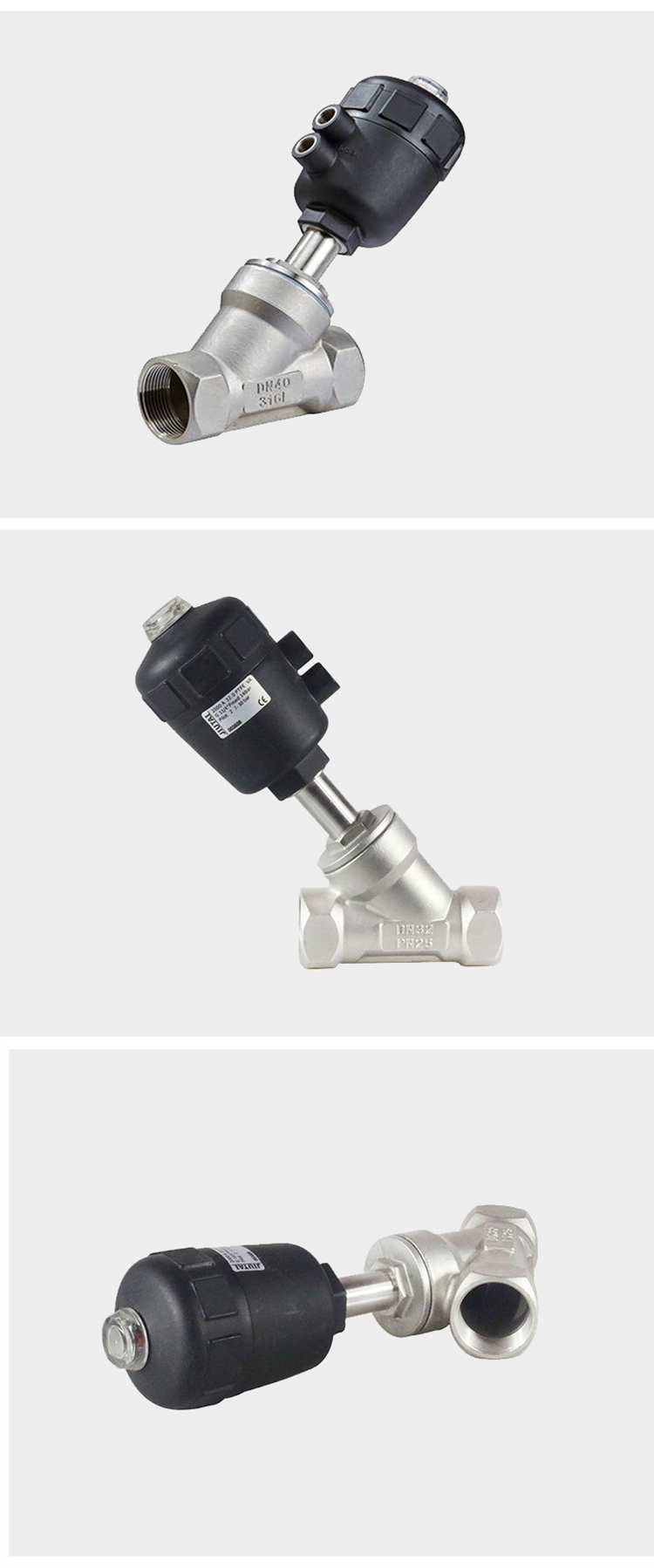 Product name:YOULI 1.6mpa High Temperature Water Gas Oil Steam 304 316 BSP NPT Stainless Steel Pneumatic Female Threaded Angle Seat Valve