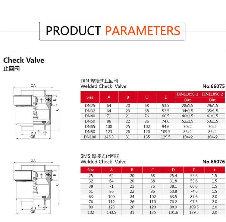 Products Name:YOULI Hygienic Food Grade Sanitary Stainless Steel SS304 with Union Non-return Tri Clamped Check Valve