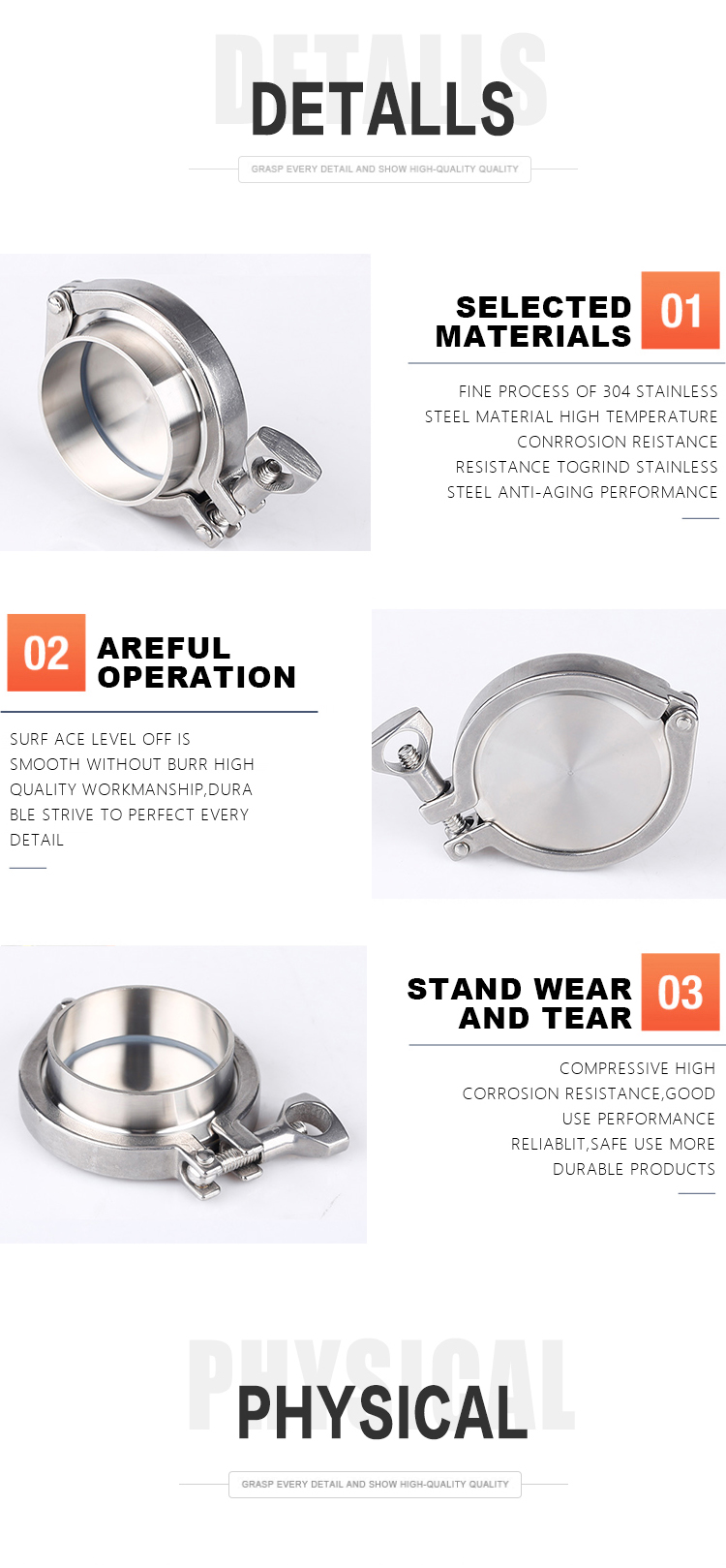 Available requirement: blister packing for every piece of product, plastic caps for clamp connected products.