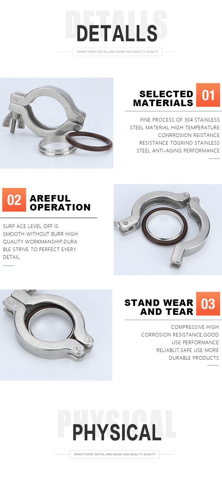 Available requirement: blister packing for every piece of product, plastic caps for clamp connected products.