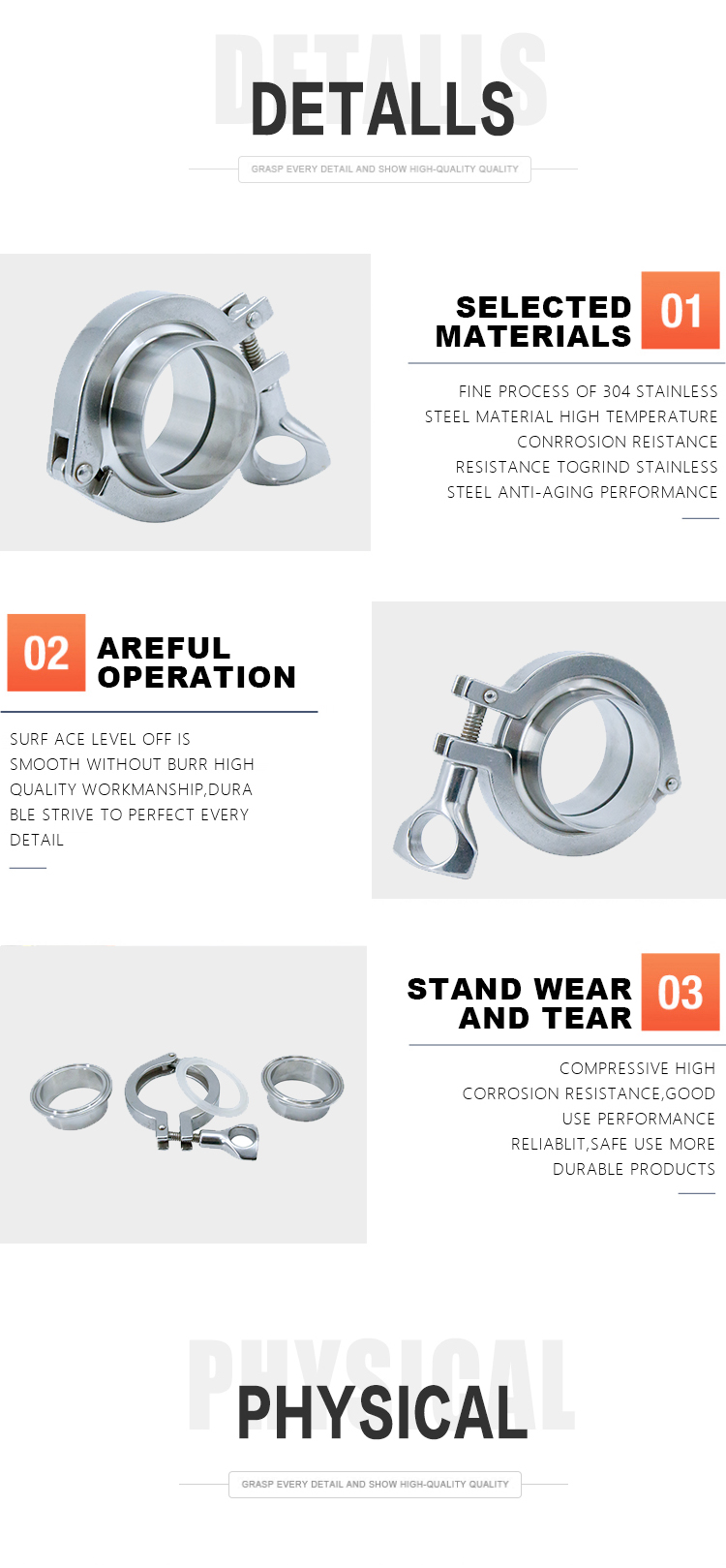 Available requirement: blister packing for every piece of product, plastic caps for clamp connected products.