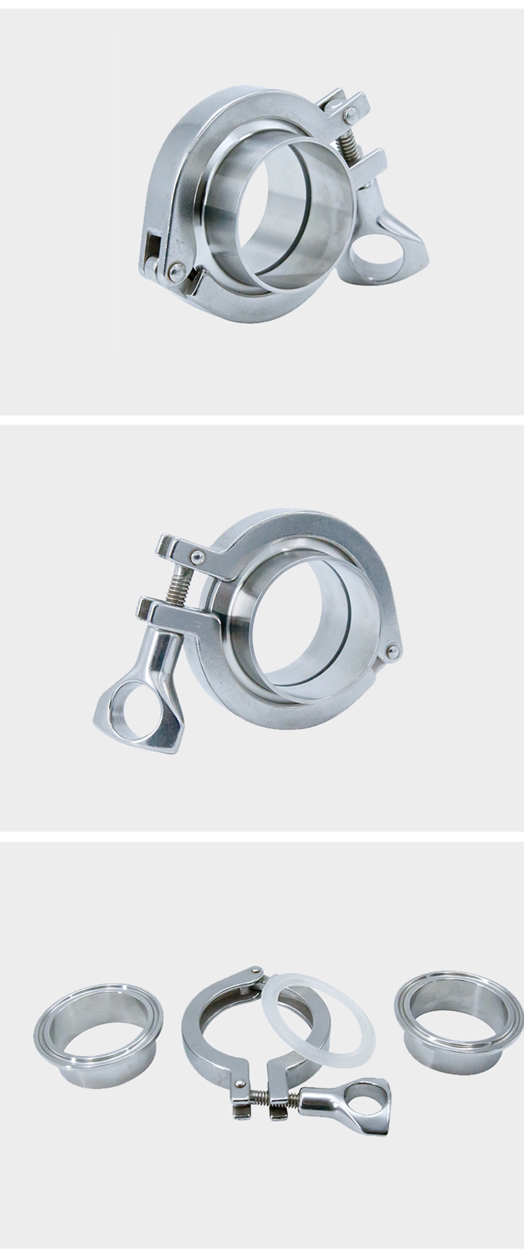 Products Name:YOULI Hygienic Food Sanitary Stainless Steel 304 SS316L DIN SMS 3A Tri-clamp Pipe Fitting Single Pin Complete Sets Clamp Ferrule