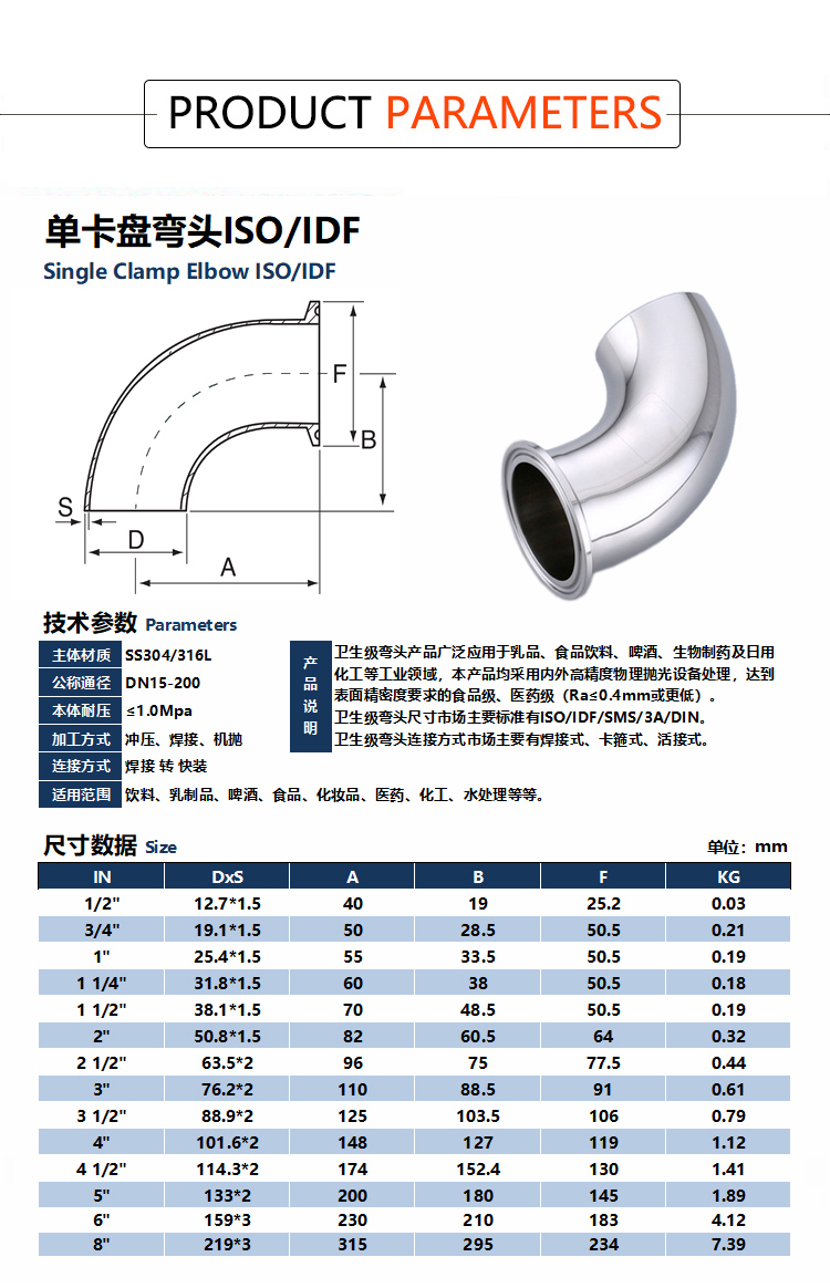 Availabe StandardSMS,DIN,3A,Idf,Rjt, BS, ISO