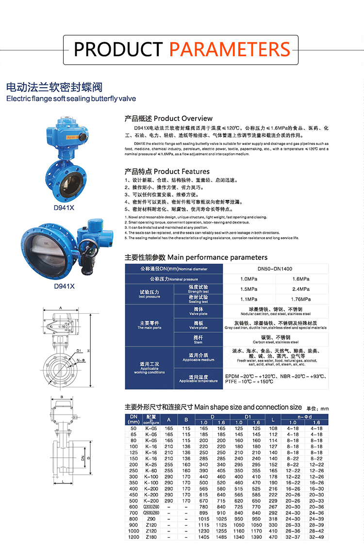 Products Name:YOULI ANSI 150LB Stainless Steel 304 Pn16 Carbon Steel FEP F46 PFA F4 Fluorine Lined Motorized Electric Flanged Butterfly Valve