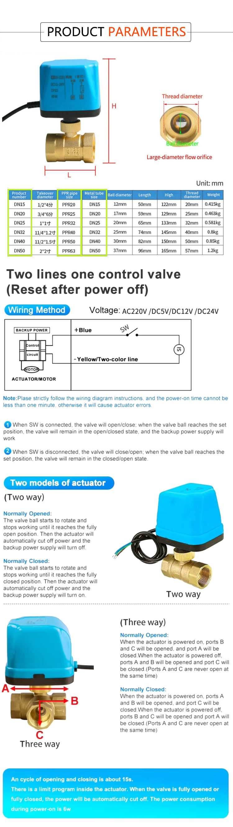 | 11 | Brass | 3/4"-DN20 | $27.85 | 0.65kg | Two lines are normally closed |