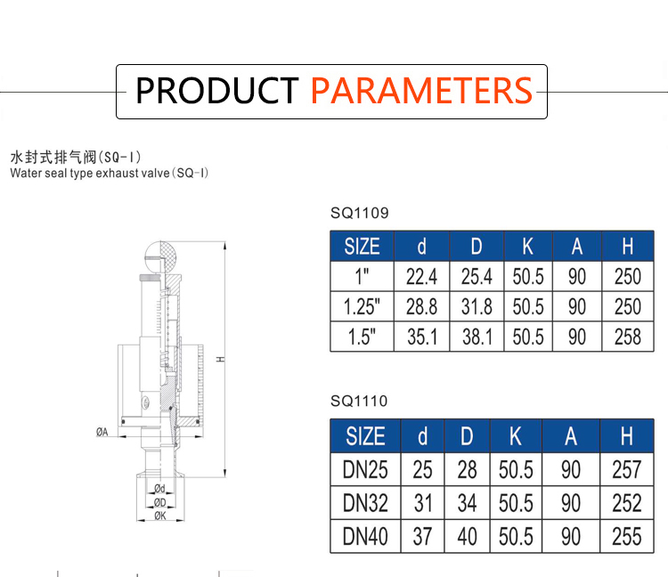 Products Name:YOULI Hygienic Food Grade Sanitary Stainless Steel 304 316L Tri Clamped Vertical Water Seal Type Exhaust Valve Vent Valve