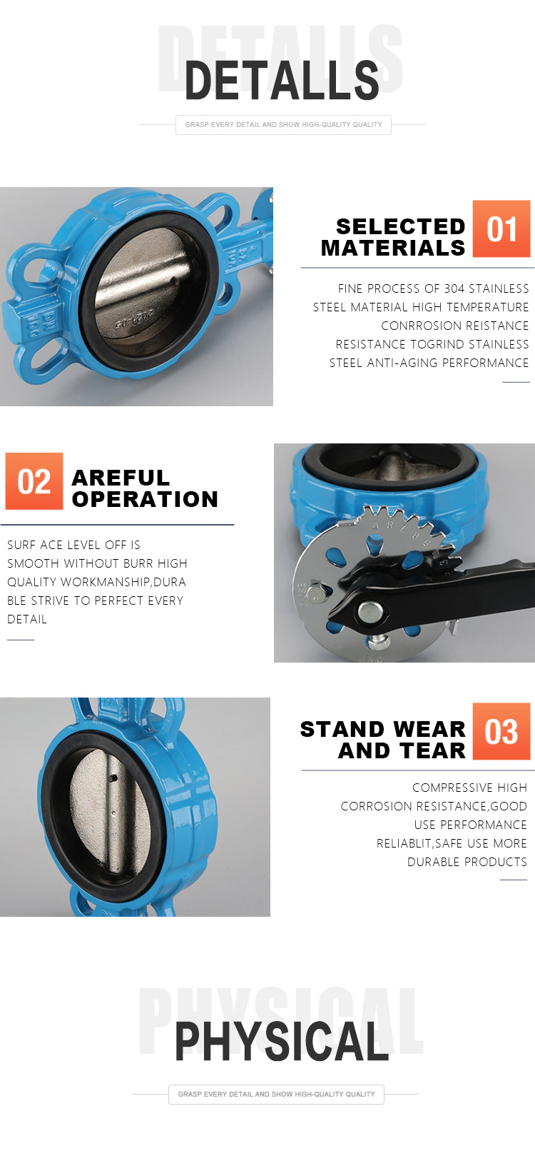 Products Name:YOULI Stainless Steel ANSI 150LB 304 316 JIS 10K Pn10-16 Cast Iron PTFE EPDM Soft Sealing Water Manual Wafer Butterfly Valve
