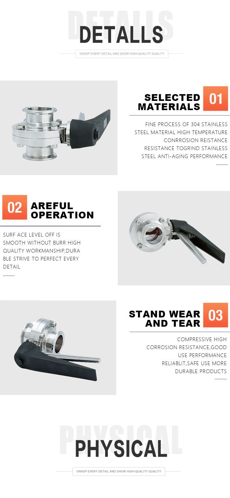 Available requirement: blister packing for every piece of product, plastic caps for clamp connected products.