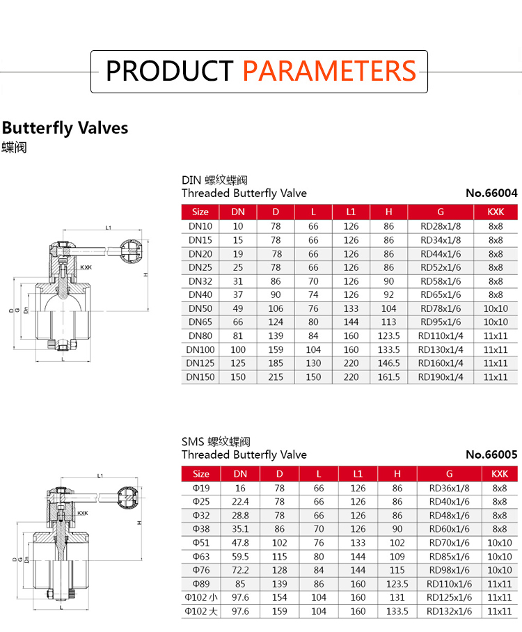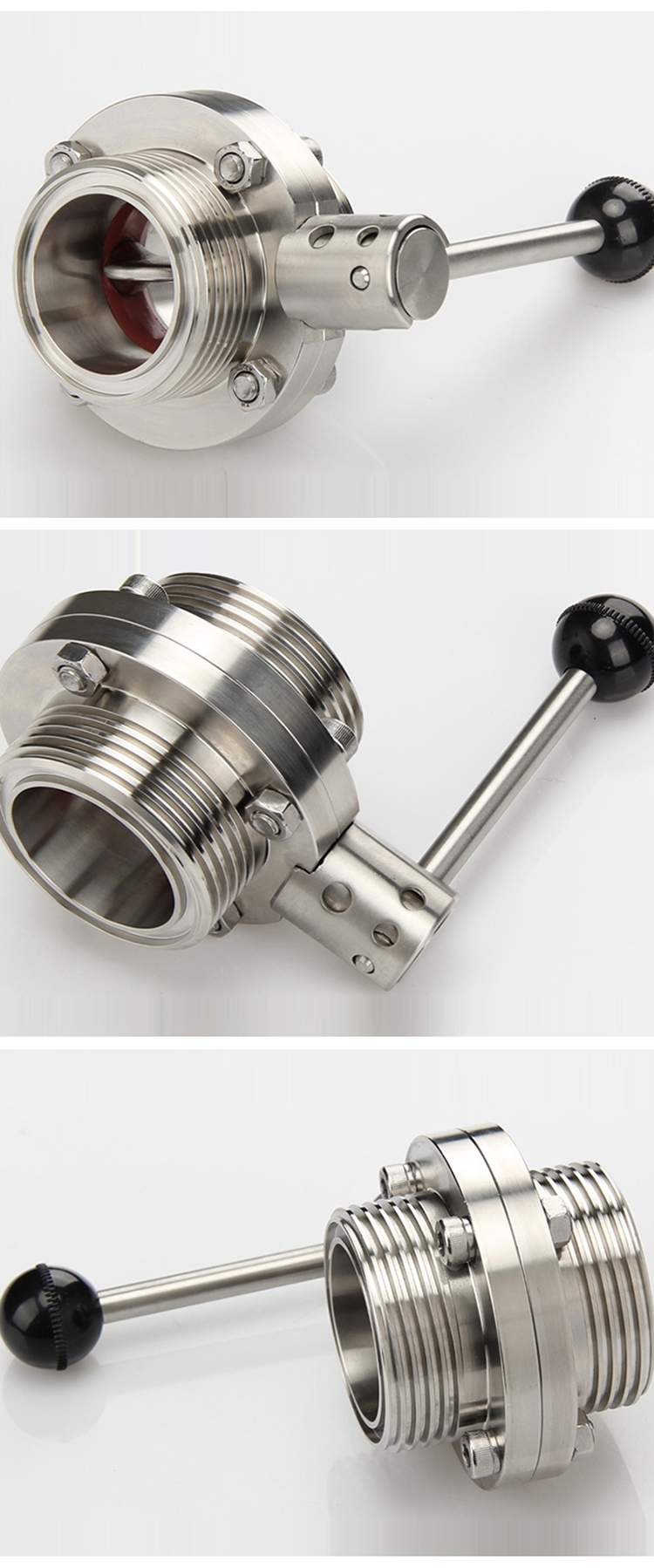 Product Name:YOULI Hygienic Food Grade Stainless Steel 3A/SMS/DIN 304 316L Silicon Sanitary Manual Male Threaded Butterfly Valve