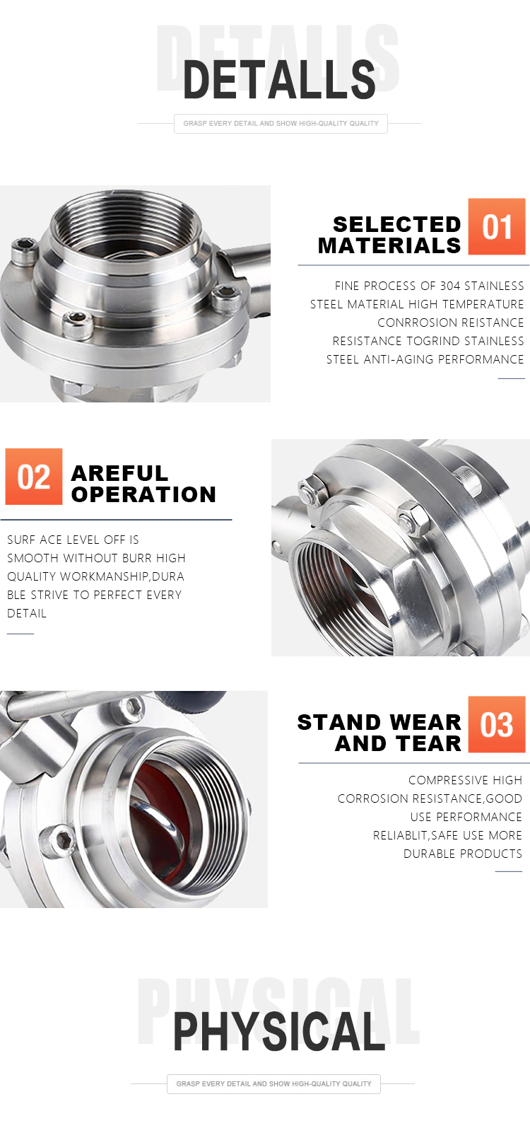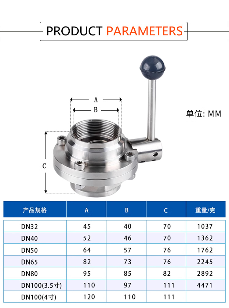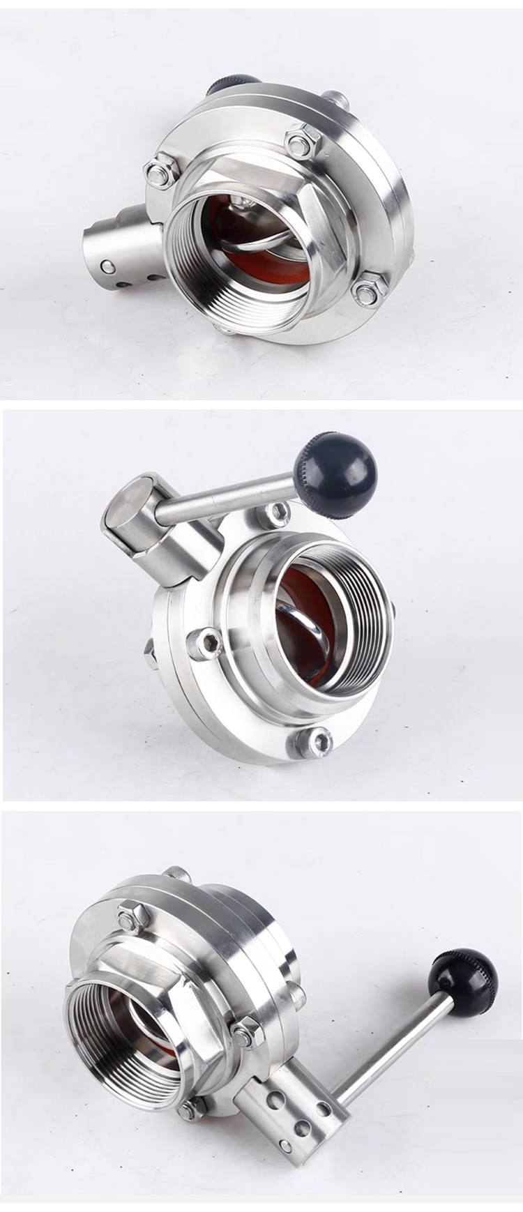 Product Name:YOULI Hygienic Food Grade Stainless Steel 3A/SMS/DIN 304 316 Silicon Sanitary Manual Female Threaded Butterfly Valve