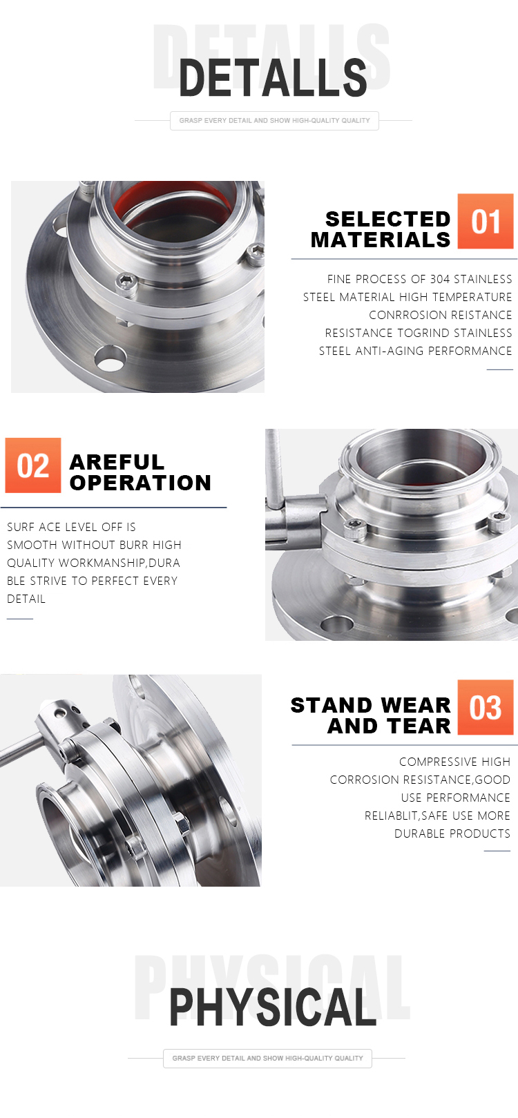 Available requirement: blister packing for every piece of product, plastic caps for clamp connected products.