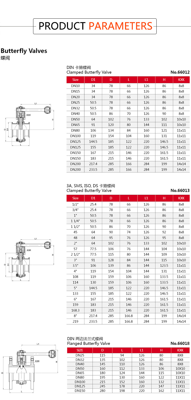 Products Name:YOULI Hygienic Food Grade Stainless Steel 304 316 Silicon Lever Handle Sanitary Manual Tri Clover Flnage Butterfly Valve
