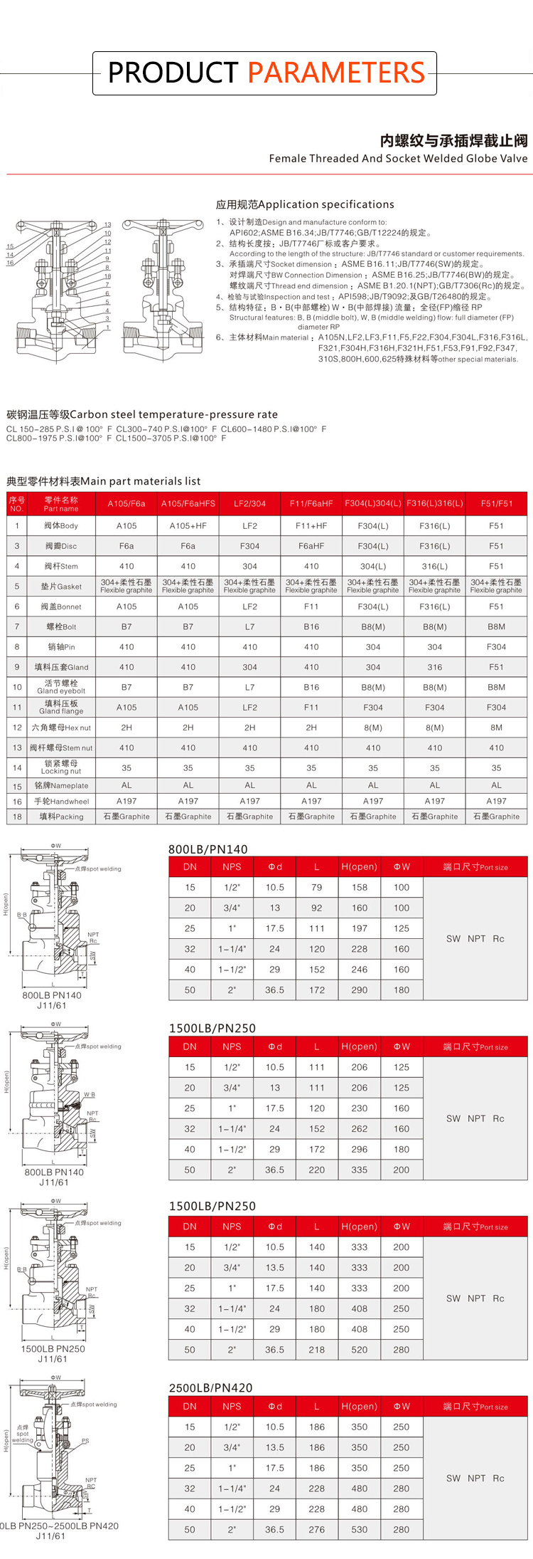 | 1 | A105 | 1/2"-DN15 | $13.2 | 1.6kg | 800LB |