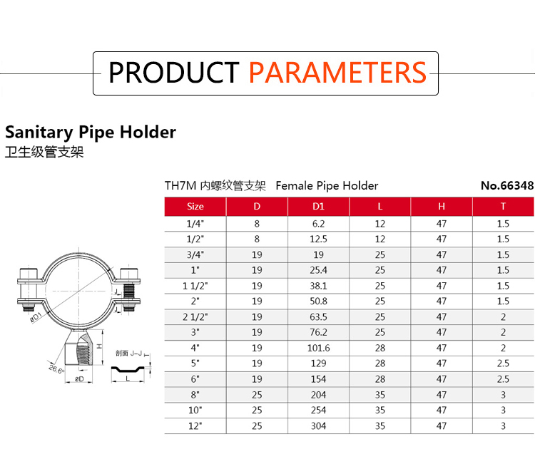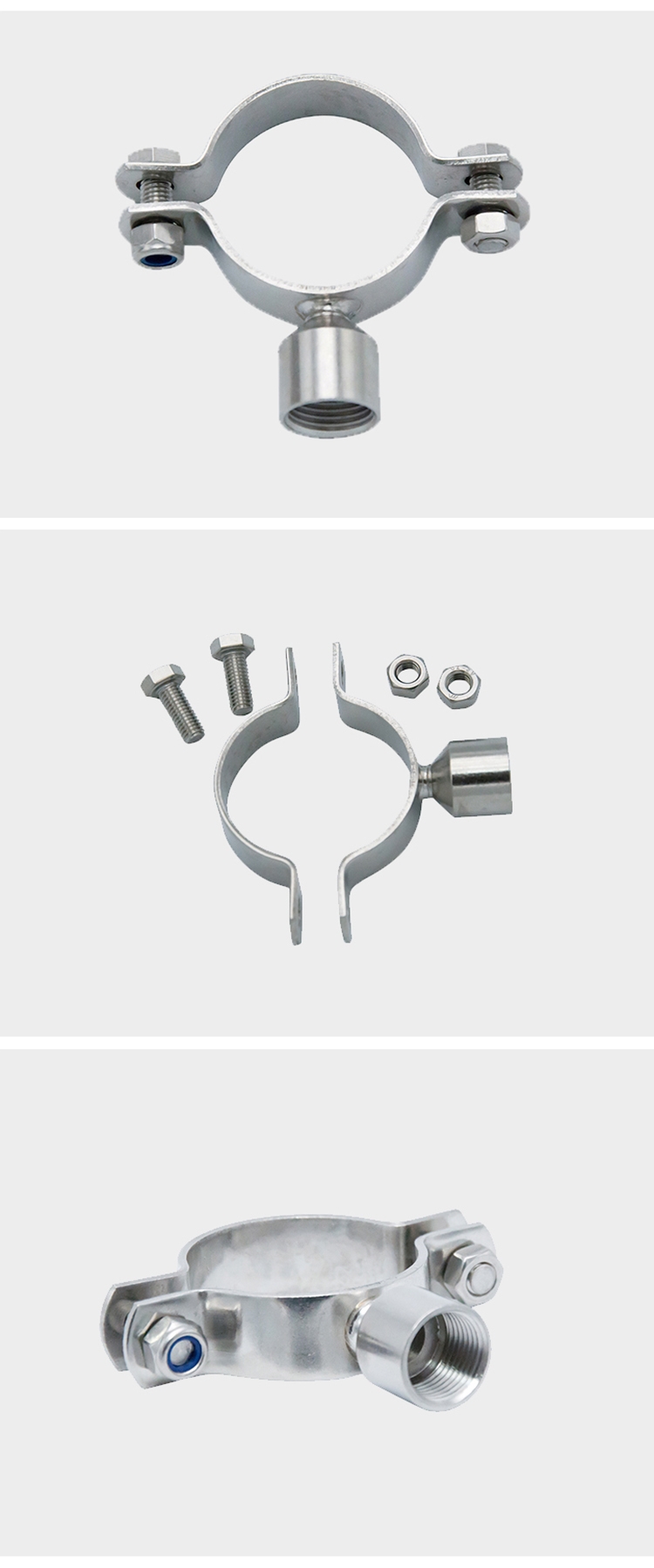 Products Name:YOULI Sanitary Pipe Fittings Ube Hex Pipe Holder Stainless Steel 304 With Short Handle Bar H2M M10 Female Thread Round Pipe Holder