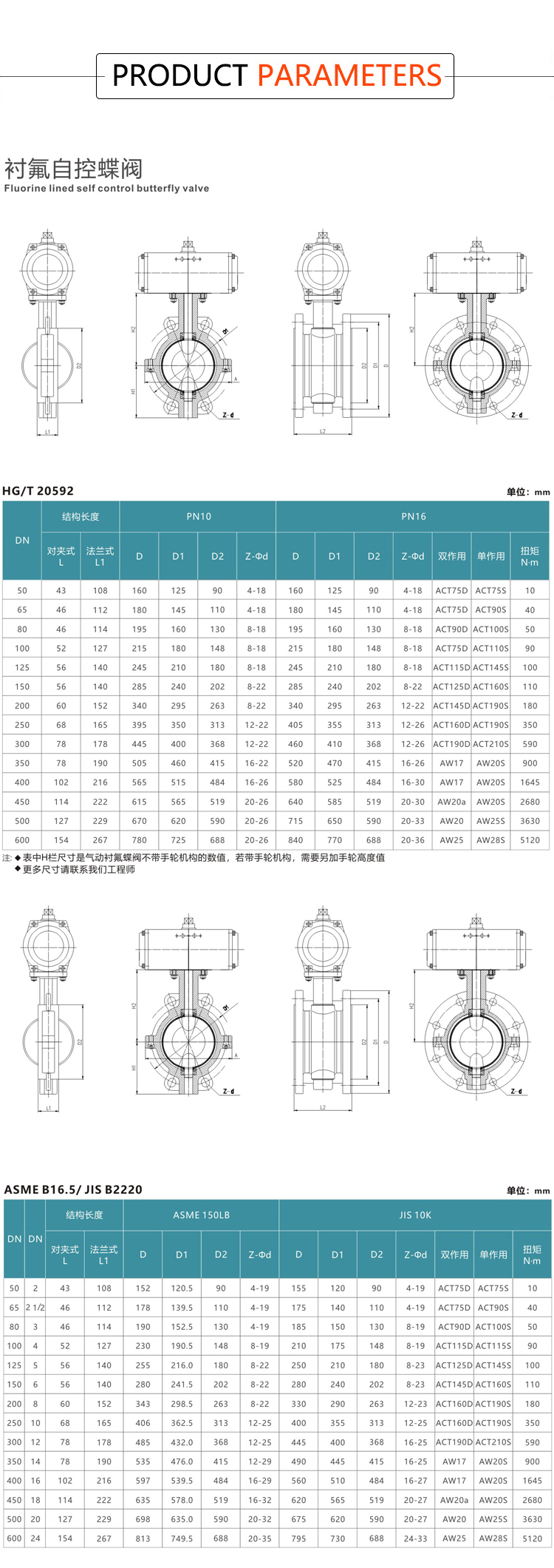 Products Name:YOULI Sulfuric Acid Hydrochloric Acid JIS 10K Pn16 WCB FEP F46 PFA F4 Pneumatic Actuator Fluorine Lined Wafer Butterfly Valve
