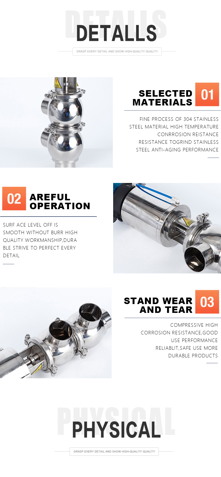 Available requirement: blister packing for every piece of product, plastic caps for clamp connected products.