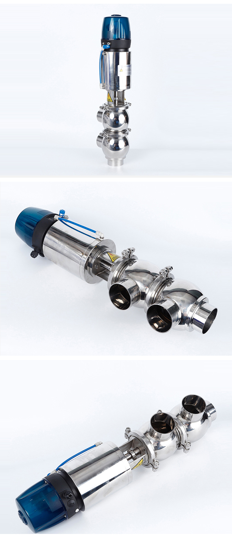 YOULI Hygienic Food Grade Sanitary Stainless Steel 304 316L Intelligent Pneumatic LL Type Tri Clamped Reversing Divert Valve
