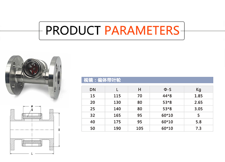 Product name:YOULI BSP NPT BSPT Screw Stainless Steel 304 316L Carbon Steel WCB Water Flow Indicator Flanged Impeller Sight Glass