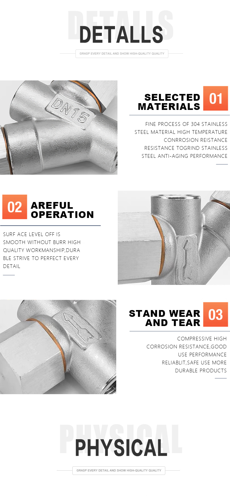 Products Name:YOULI Durable High Temperature 1.6mpa 304 316 Stainless Steel Y Type Thermal Power Female Threaded Steam Water Trap Valve