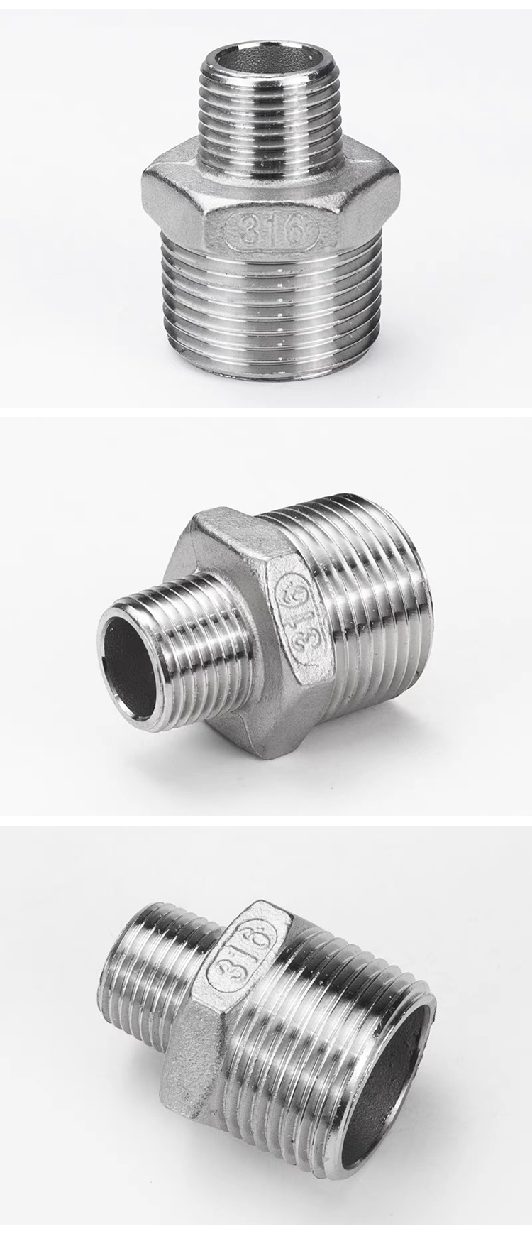 Products Name:YOULI Stainless Steel 304 SS316L BSP NPT Pipe Fitting Reducing Hexagonal Double Male Threaded Ferrule