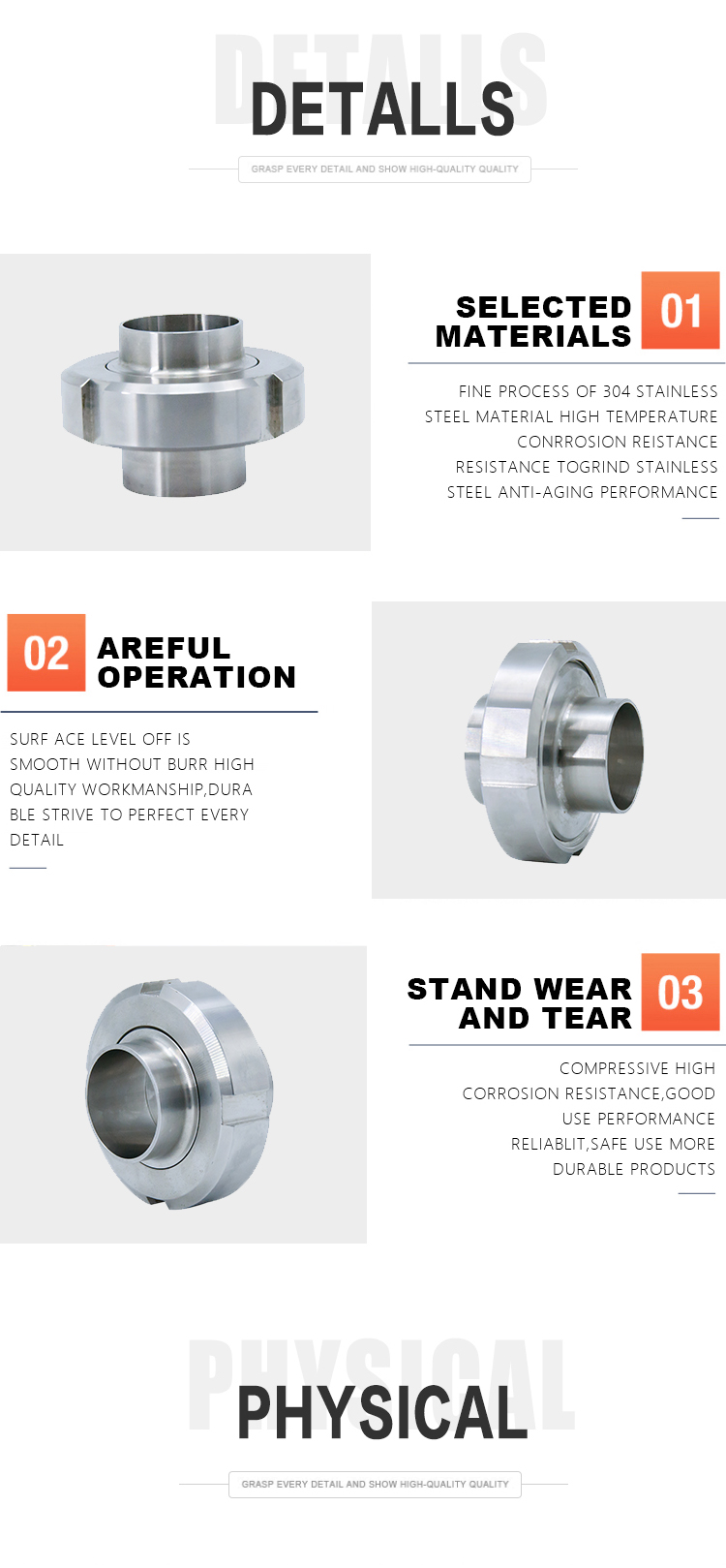 Available requirement: blister packing for every piece of product, plastic caps for clamp connected products.