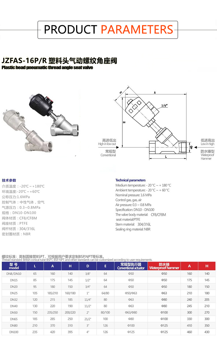 Product name:YOULI Premium High Temperature 1.6mpa 304 316 BSP NPT Stainless Steel Head Pneumatic Female Threaded Angle Seat Valve