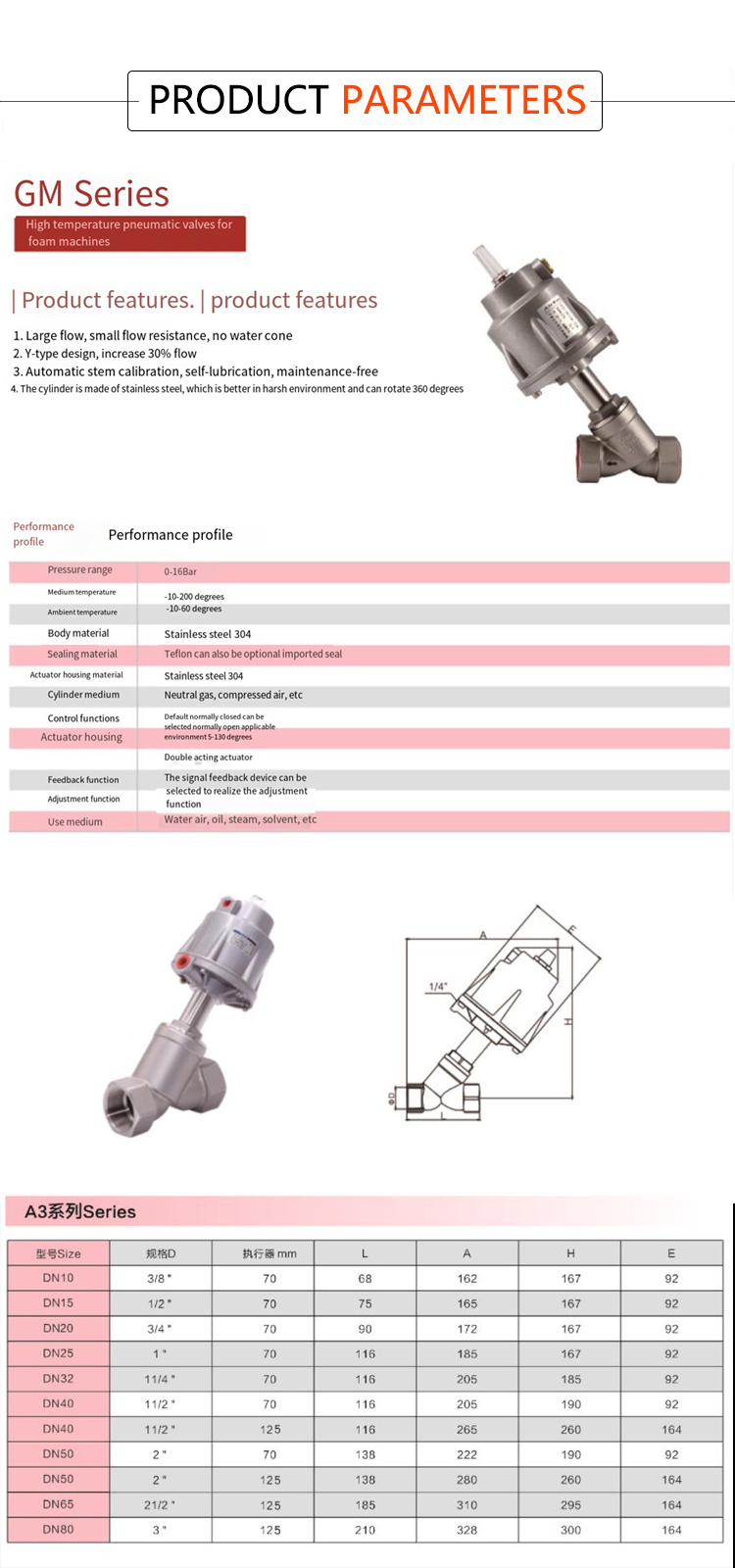 | 2 | 304 | 3/4"-DN20 | Action Φ70 | |