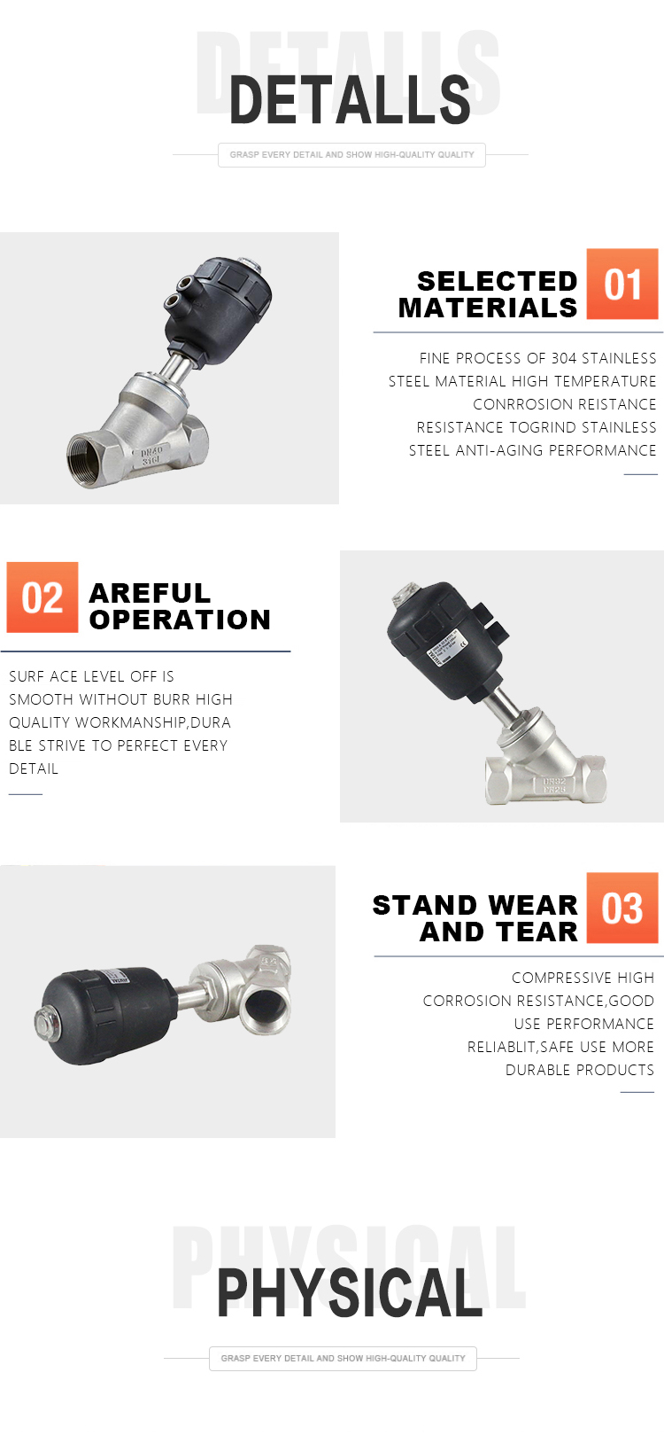 | 3 | 304 | 1"-DN25 | $15.38 | 65 | 1.04kg | Action Φ50 |