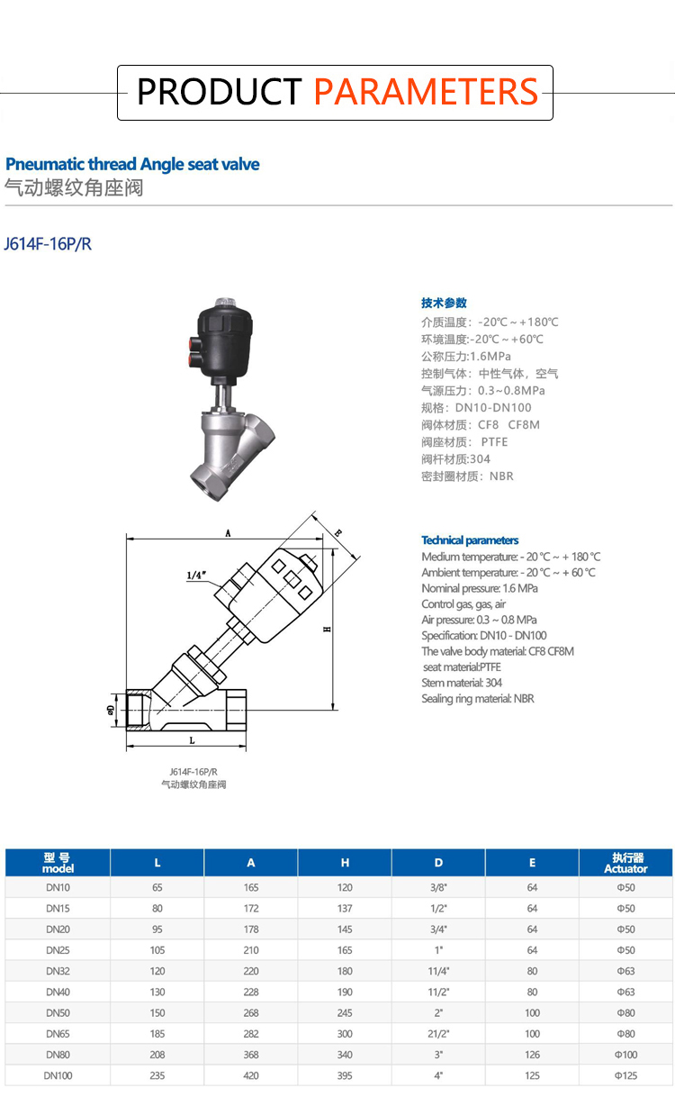 Product name:YOULI 1.6mpa High Temperature Water Gas Oil Steam 304 316 BSP NPT Stainless Steel Pneumatic Female Threaded Angle Seat Valve