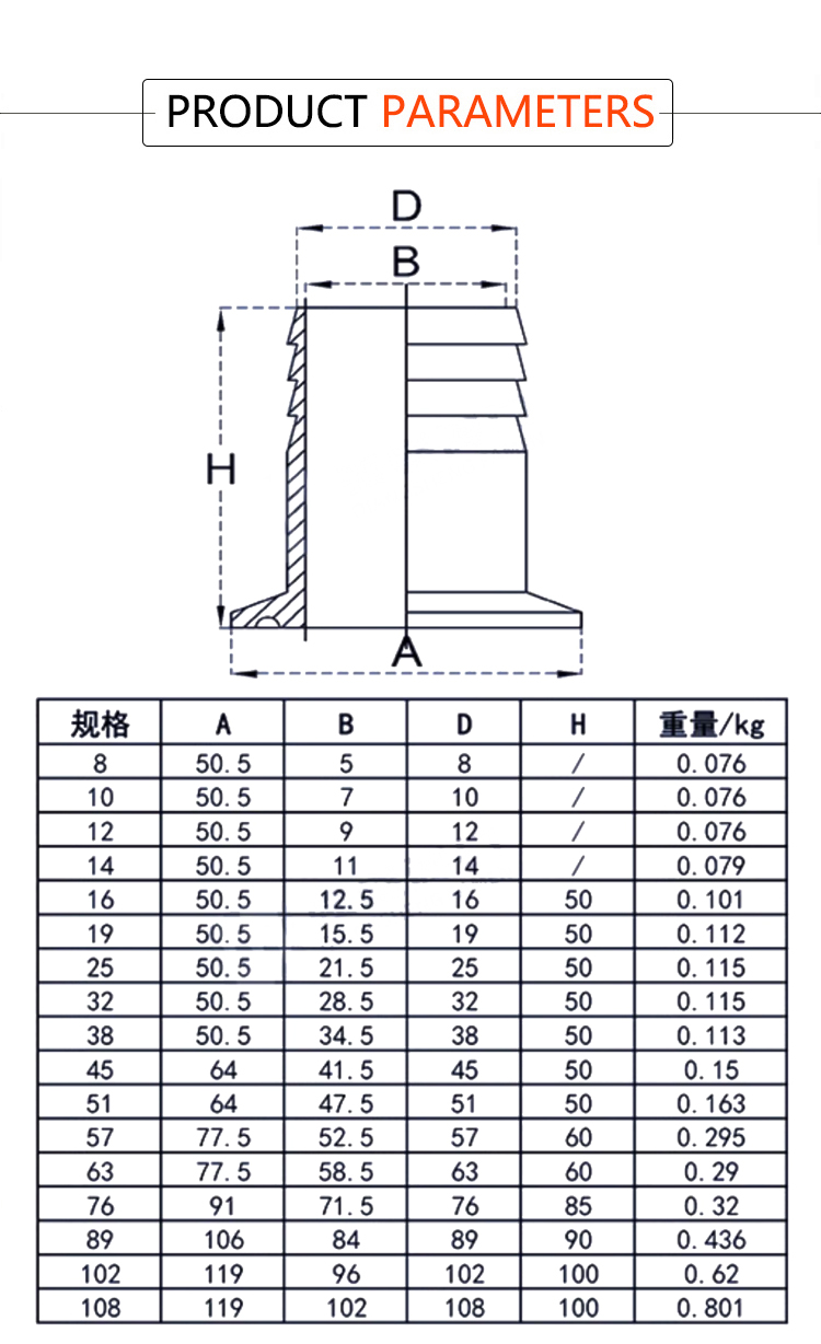 | 8 | 304 | 2-1/2"-Φ63MM K77.5MM | $7.43 | 35.4 | 0.133kg | |