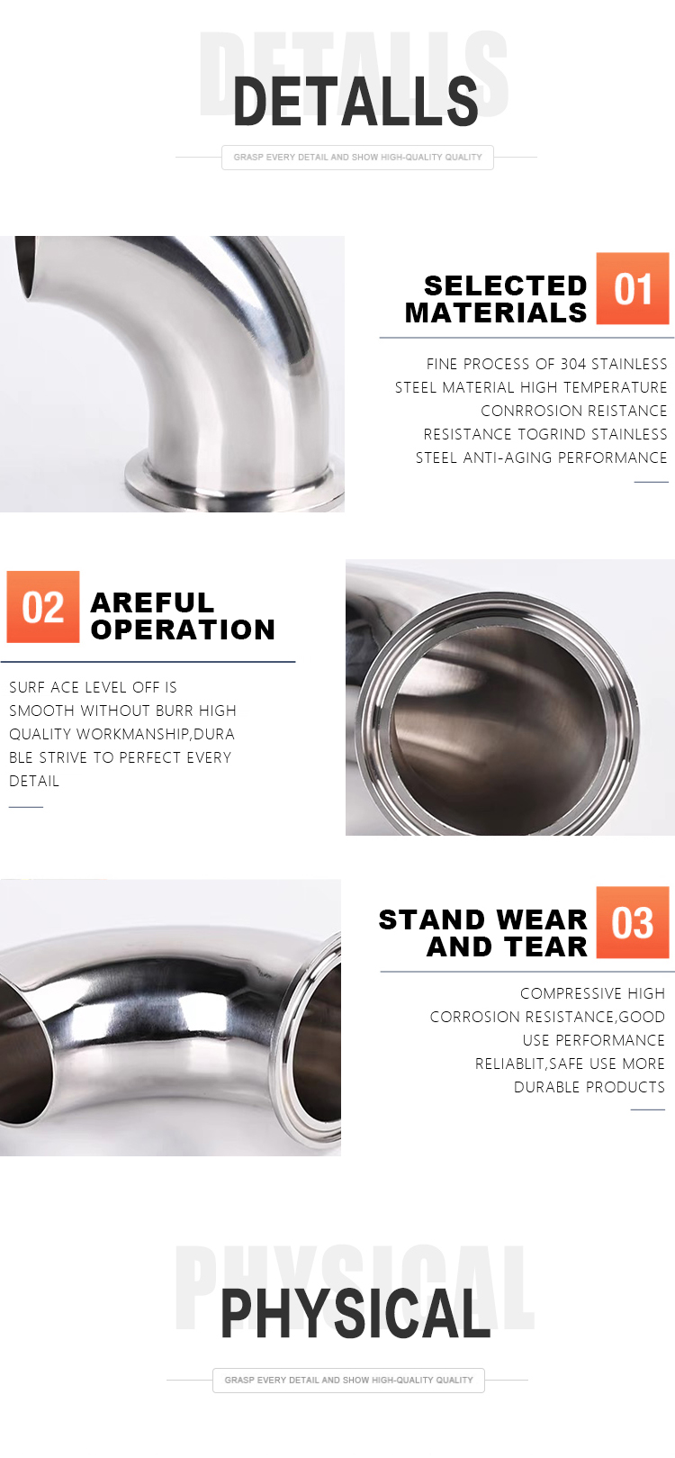 Product name:YOULI Hygienic Food Grade Sanitary Stainless Steel 304 SS316L 3A SMS DIN ISO Pipe Fitting 90 Degrees Welded Clamped Elbow