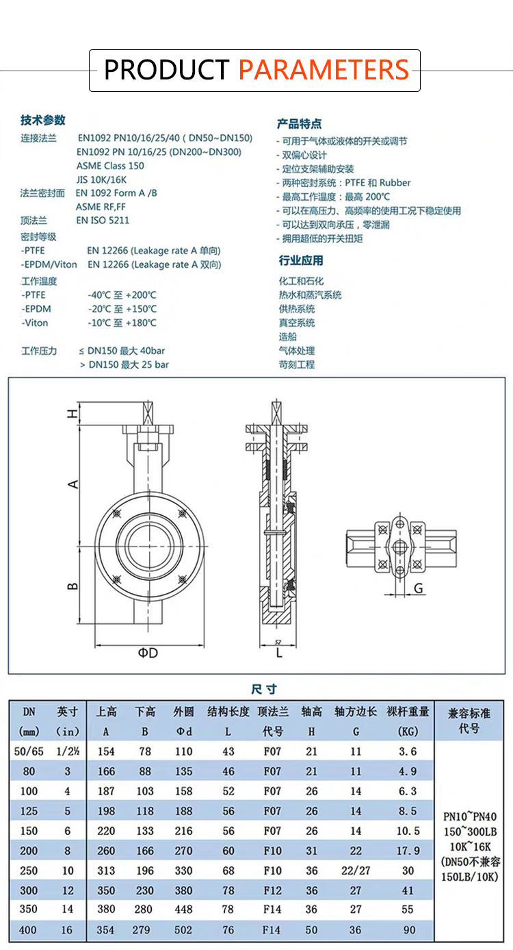 | Working pressure | JIS10-20K,API607,ANSI150-300LB,10-40Bar,PN10-40,1-4Mpa |
