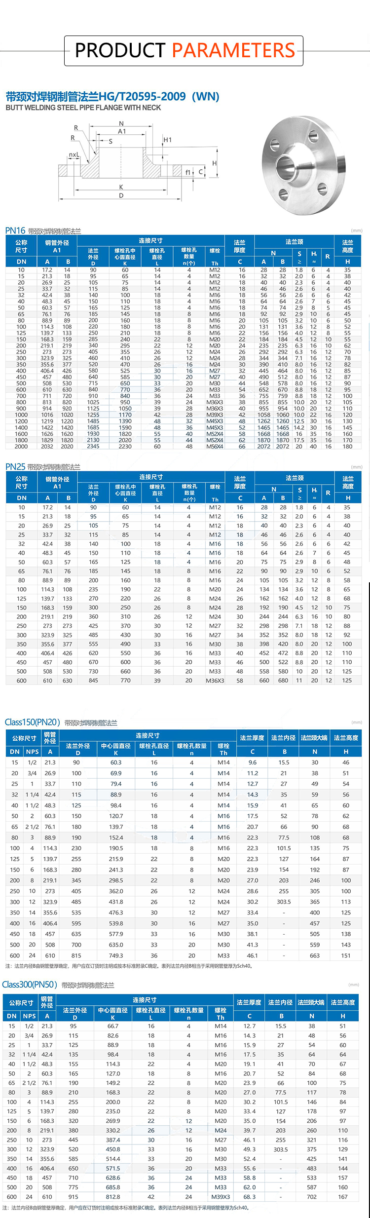 Products Name:YOULI Customized ANSI 150lb-2500lb JIS10K-20K 1/2"-72" SS 304 316 WCB Stainless Steel WIN RF FF Butt Welded Welded Neck Flange