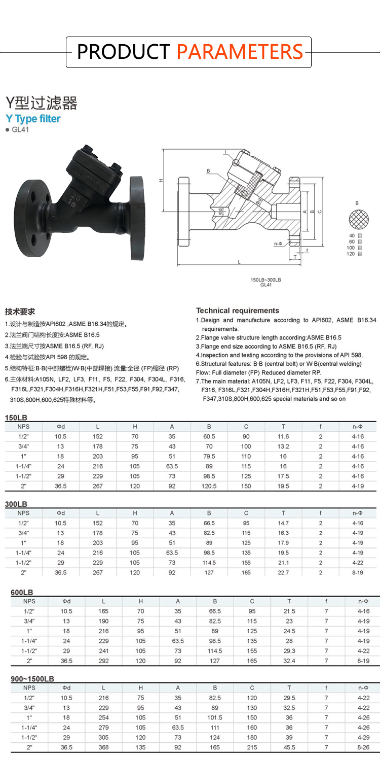 Products Name:YOULI Stainless Steel Pipeline 60 Mesh 304 316 A105 ANSI 150-800LB JIS 10K PN16 Forged Y Type Flange Strainer Filter