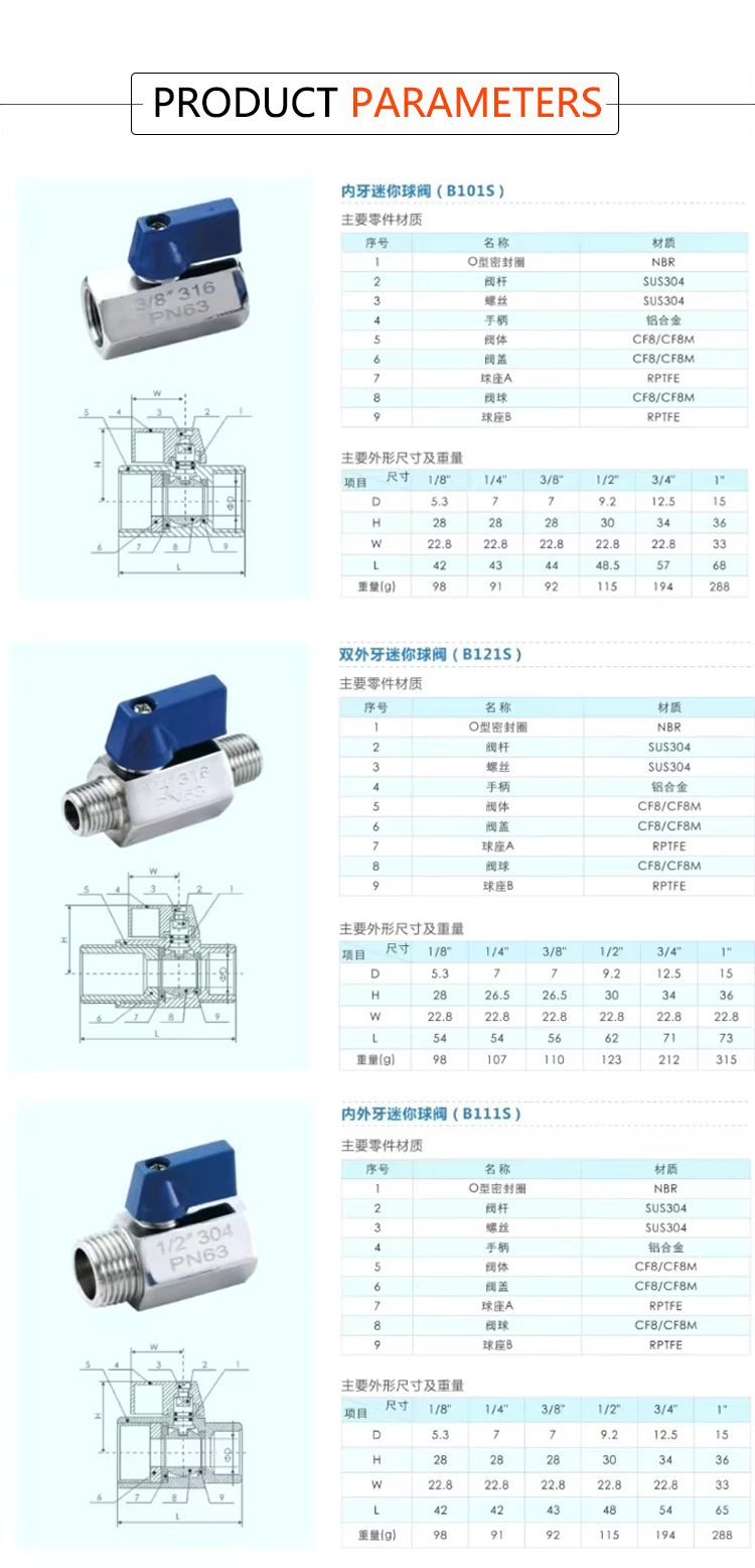 Products Name:YOULI 1/8" 1/4" NPT BSP 1000WOG PN63 304 316 Stainless Steel Manual Quickly Plug Mini Ball Valve