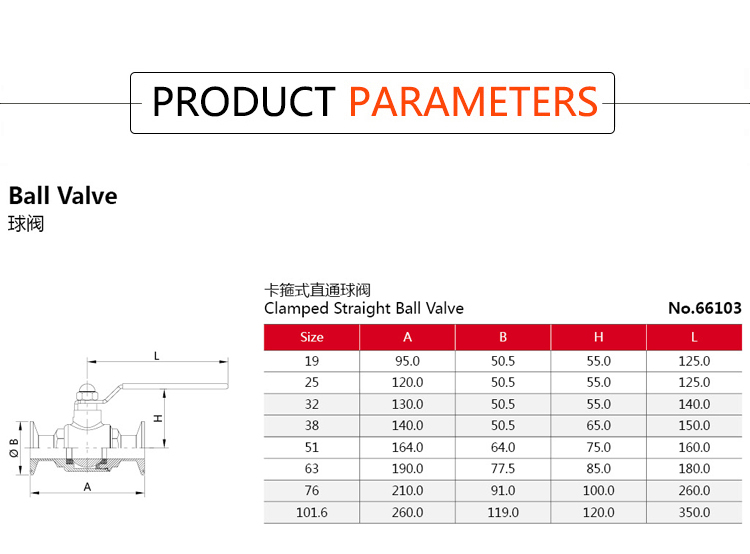 Products Name:YOULI Top-Quality Hygienic Food Grade Sanitary Stainless Steel 304 316L Beverage Milk Manual Straight Tri Clamped Ball Valve