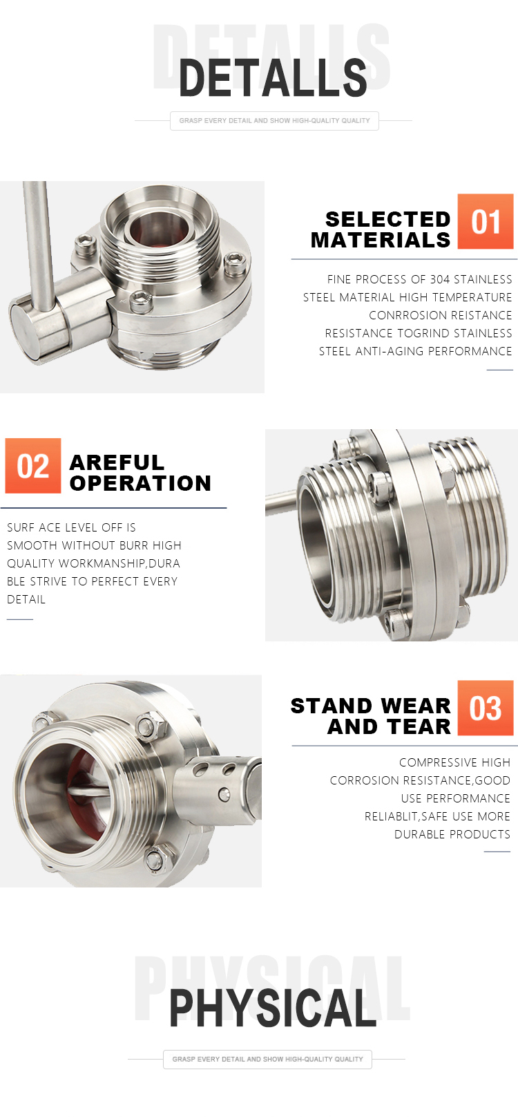 Product Name:YOULI Hygienic Food Grade Stainless Steel 3A/SMS/DIN 304 316L Silicon Sanitary Manual Male Threaded Butterfly Valve