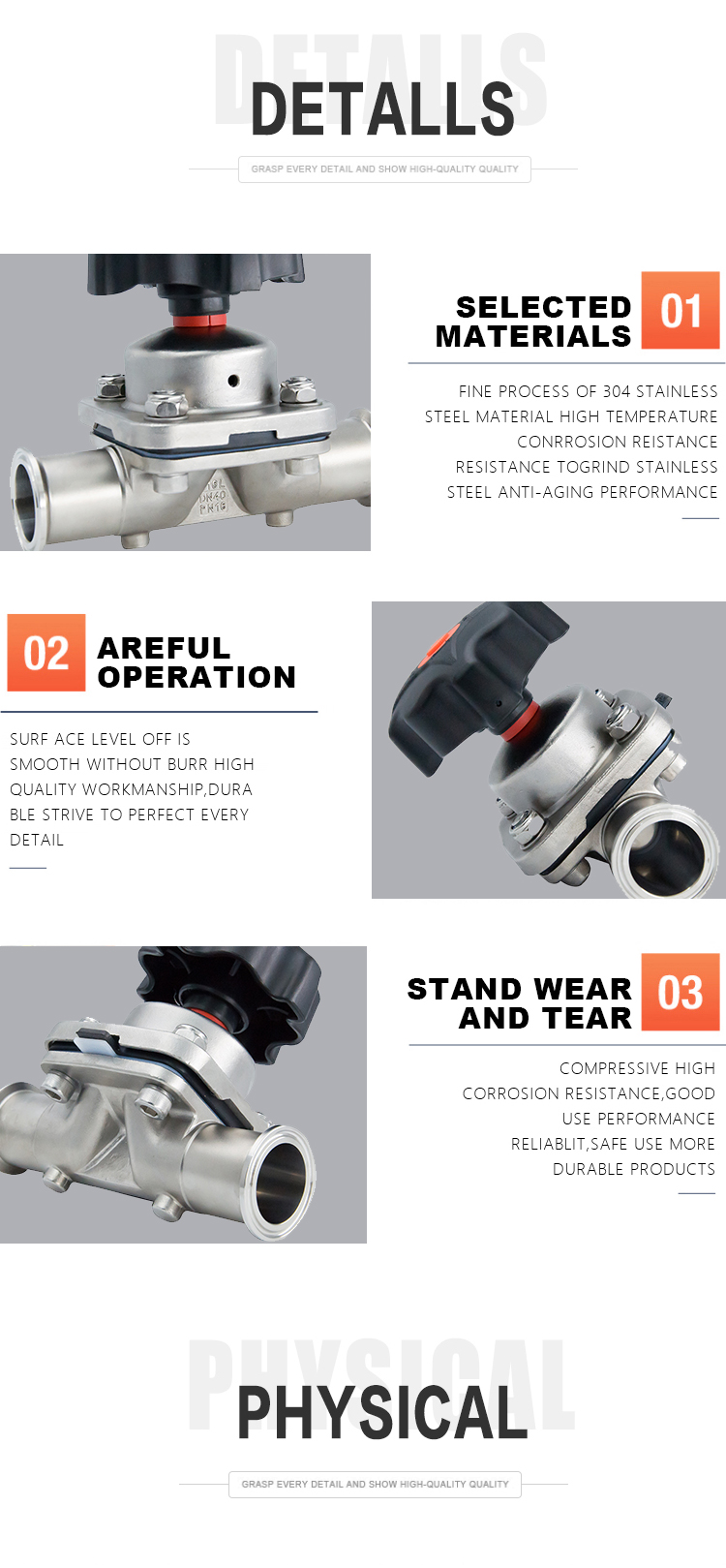 Products Name:YOULI Hygienic Food Grade Sanitary Stainless Steel 316L Pharmaceutical Biological EPDM PTFE Manual Tri Clamped Diaphragm Valve