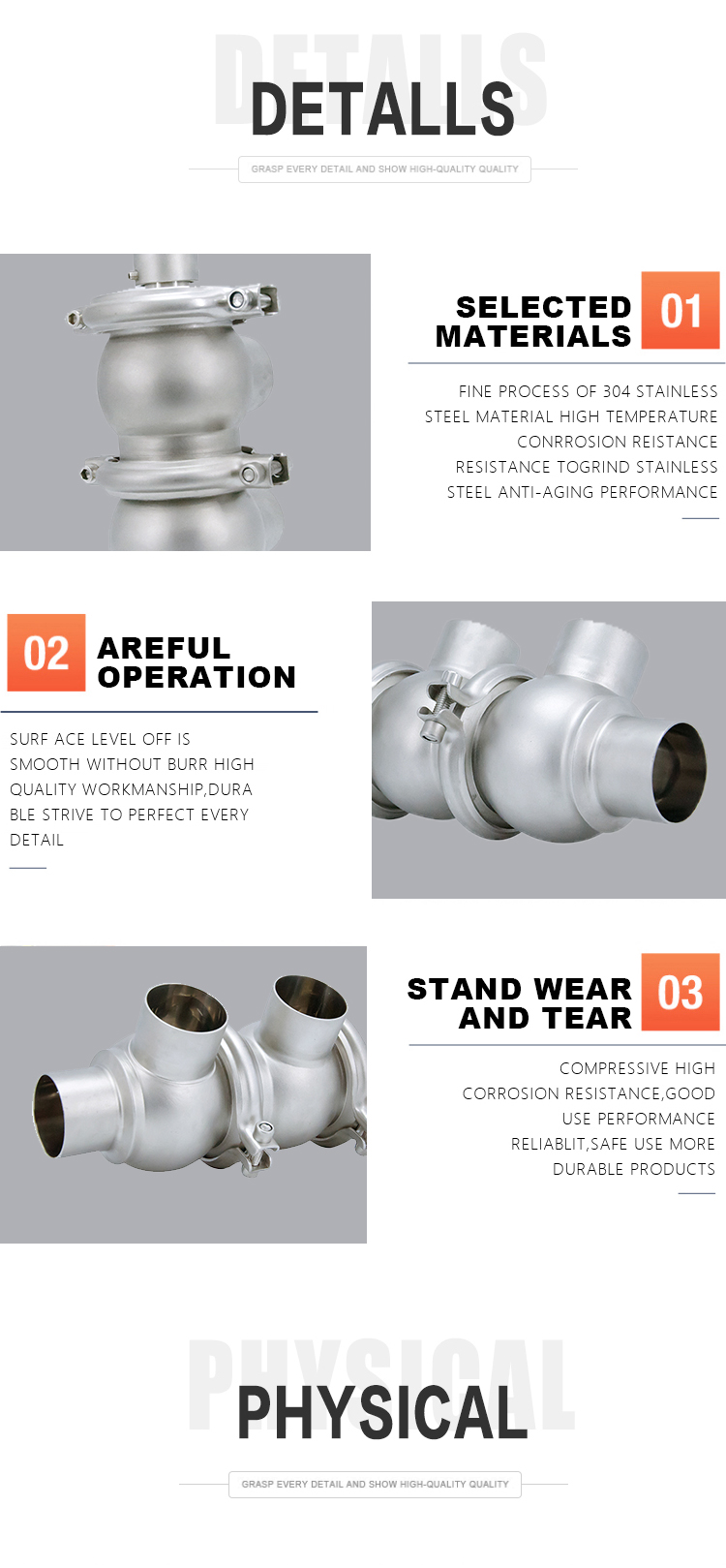 Sanitary grade globe valves are mainly used in industries with high hygiene requirements such as food, beverages, and pharmaceuticals. In the food and beverage industry, it is used to control the flow of fluids (such as juice, milk, etc.) in pipelines, facilitate the opening and closing of pipeline systems, and ensure the hygiene and safety of products during processing and transportation. In the pharmaceutical industry, it is used to transport various medicinal liquids, prevent external impurities from entering, and ensure the quality of drugs. Sanitary grade directional valves are mainly used in systems that require changing the direction of fluid flow. In the pipeline cleaning system of food processing, the direction of water flow is changed through a directional valve to achieve cleaning of different pipeline parts. In the pharmaceutical dispensing system, it can switch the liquid flow direction and complete the proportioning operation of different solutions.