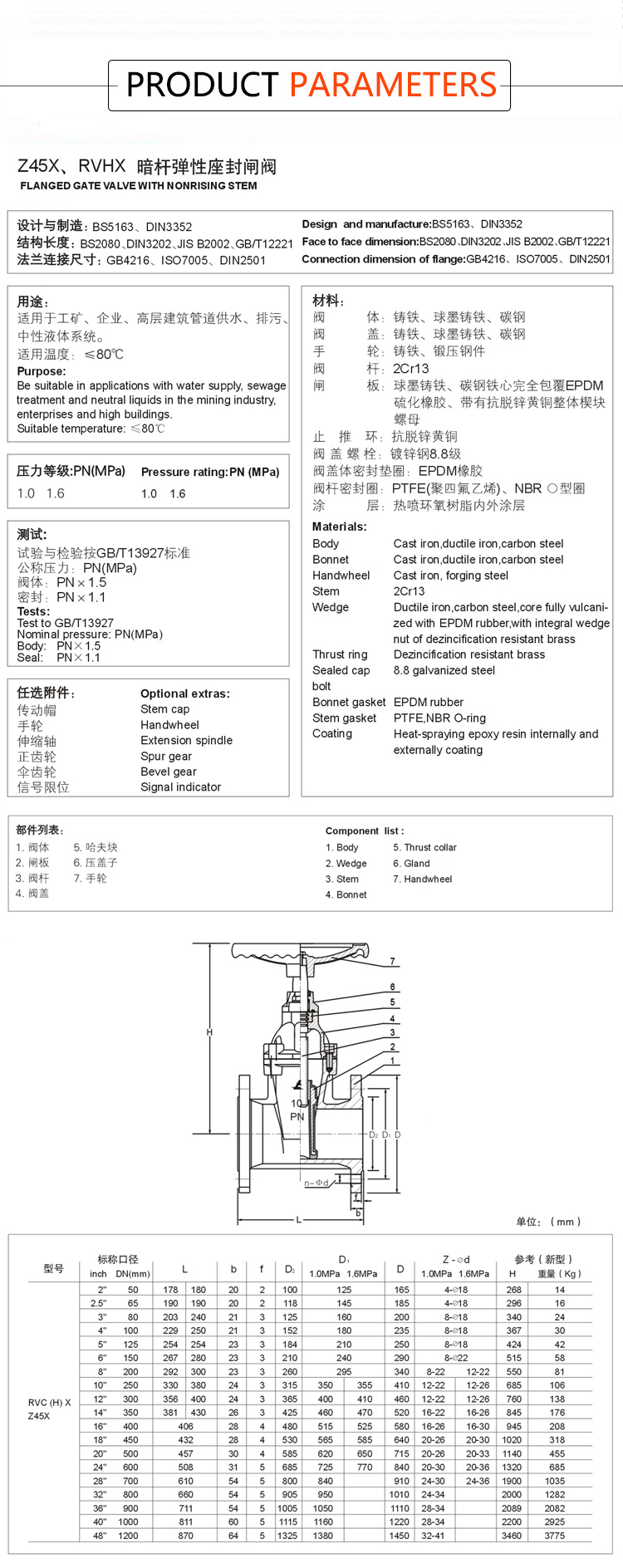 Products Name:YOULI Zero Leakage Z45X ANSI 150LB 304 316 Stainless Steel Cast Iron PN16 Non Rising Stem Soft Seal Flanged Gate Valve