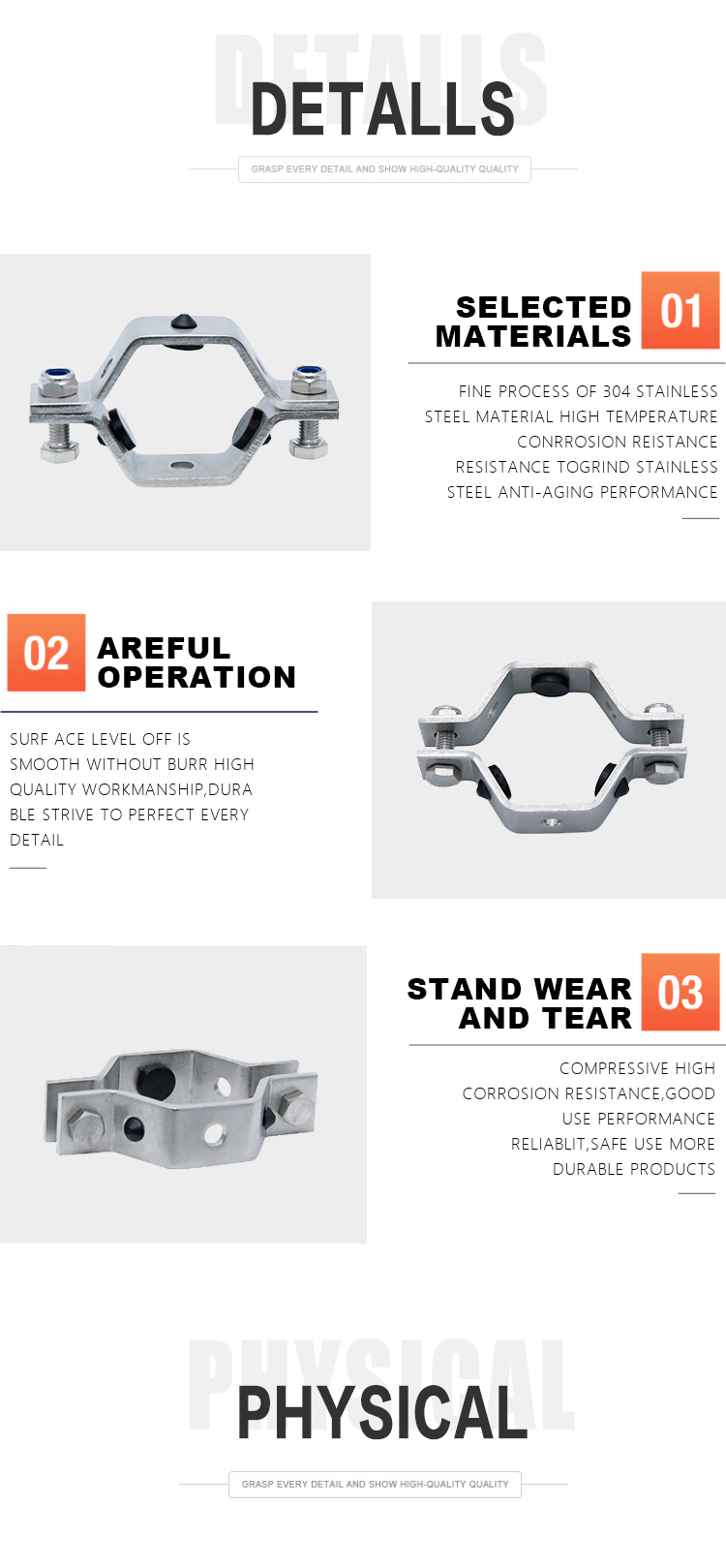 YOULI Sanitary Pipe Fittings Tube Hex Pipe Holder Stainless Steel 304 Regulate With Bracket Handle Welded Round Pipe Holder