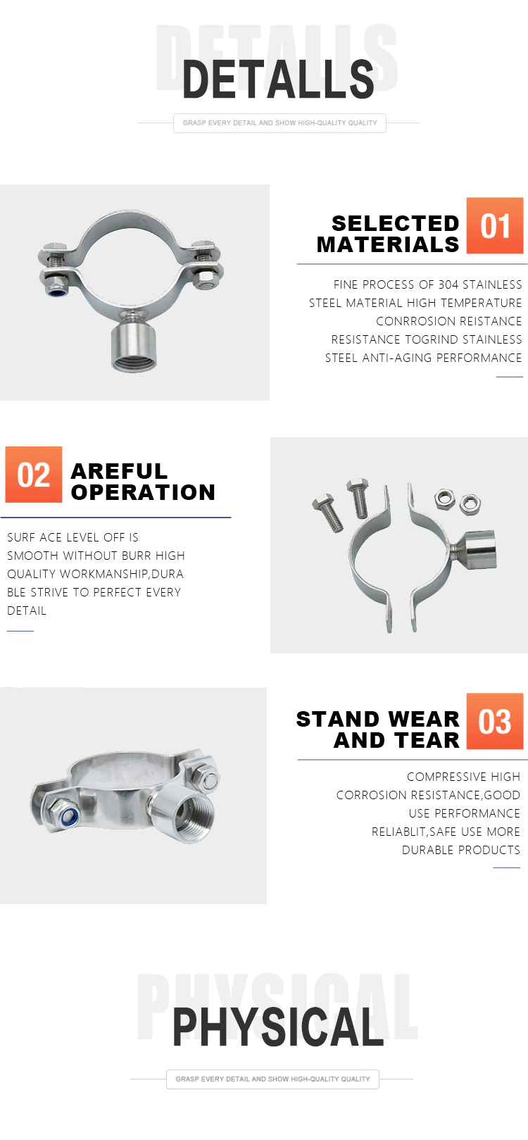 Products Name:YOULI Sanitary Pipe Fittings Ube Hex Pipe Holder Stainless Steel 304 With Short Handle Bar H2M M10 Female Thread Round Pipe Holder