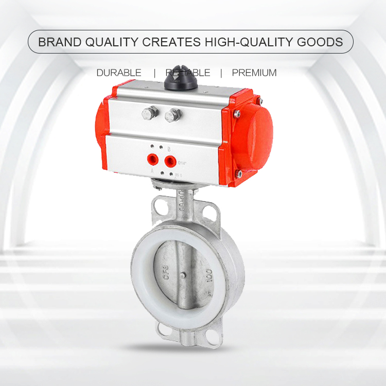 YOULI Stainless Steel 304 316 Pn16 Zero Leakage Soft Seal PTFE Silicone NBR Pneumatic Actuator Wafer Butterfly Valve