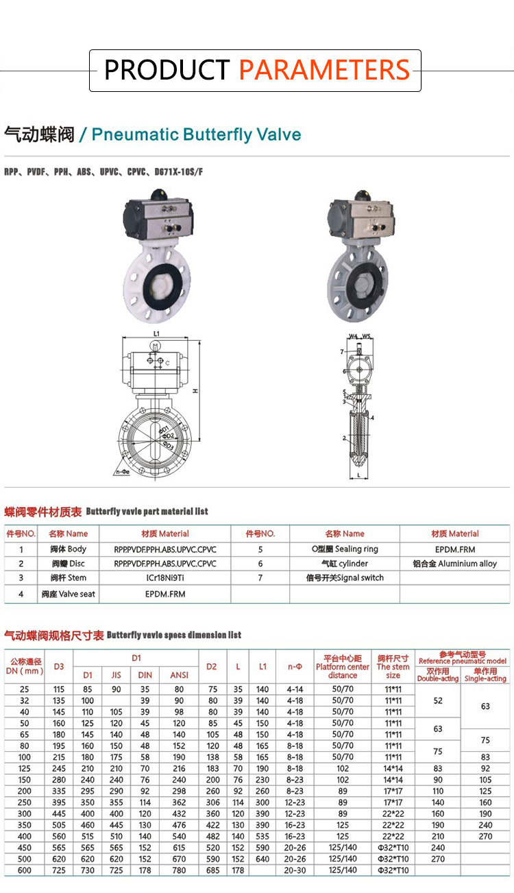 Products Name:YOULI Zero Leakage Corrosion Resistance Water PVC UPVC CPVC PPH Plastic Pneumatic Actuator Wafer Butterfly Valve