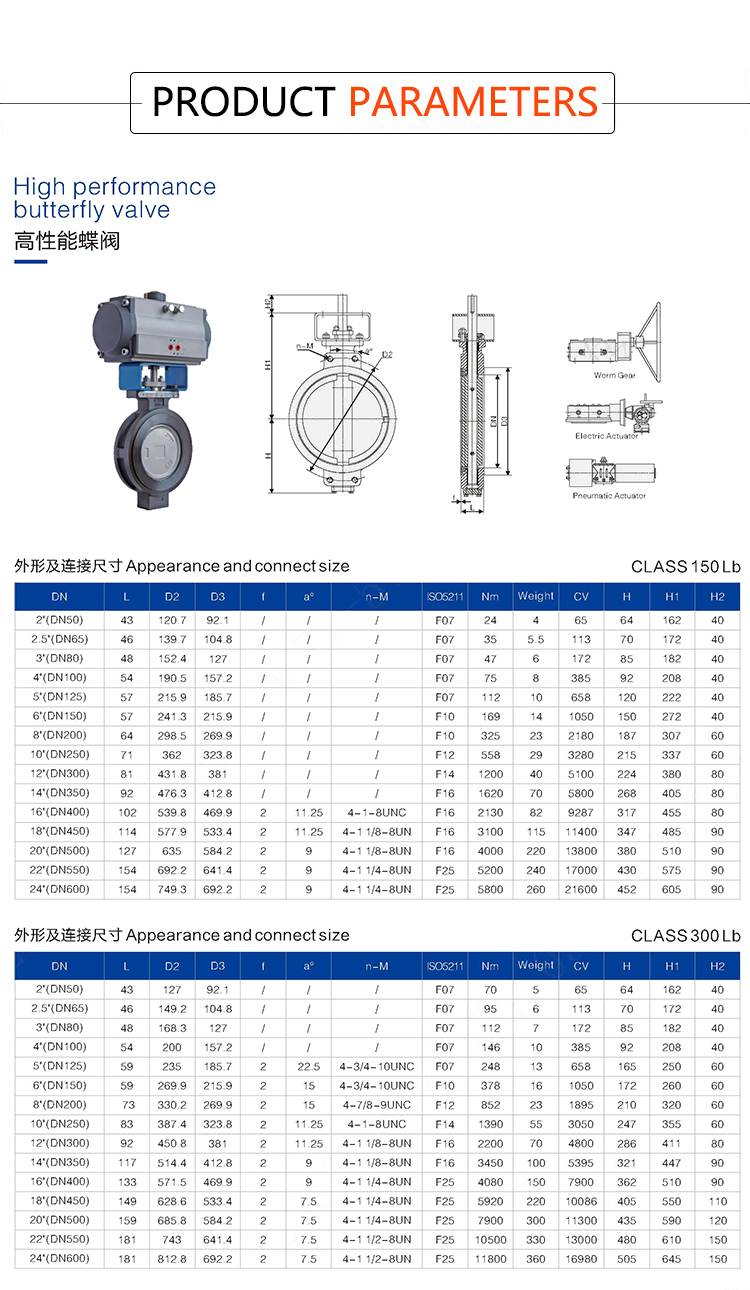Products Name:YOULI ANSI 150LB Stainless Steel Pn16 Carbon Steel Pneumatic High Performance Double Eccentric Wafer Butterfly Valve
