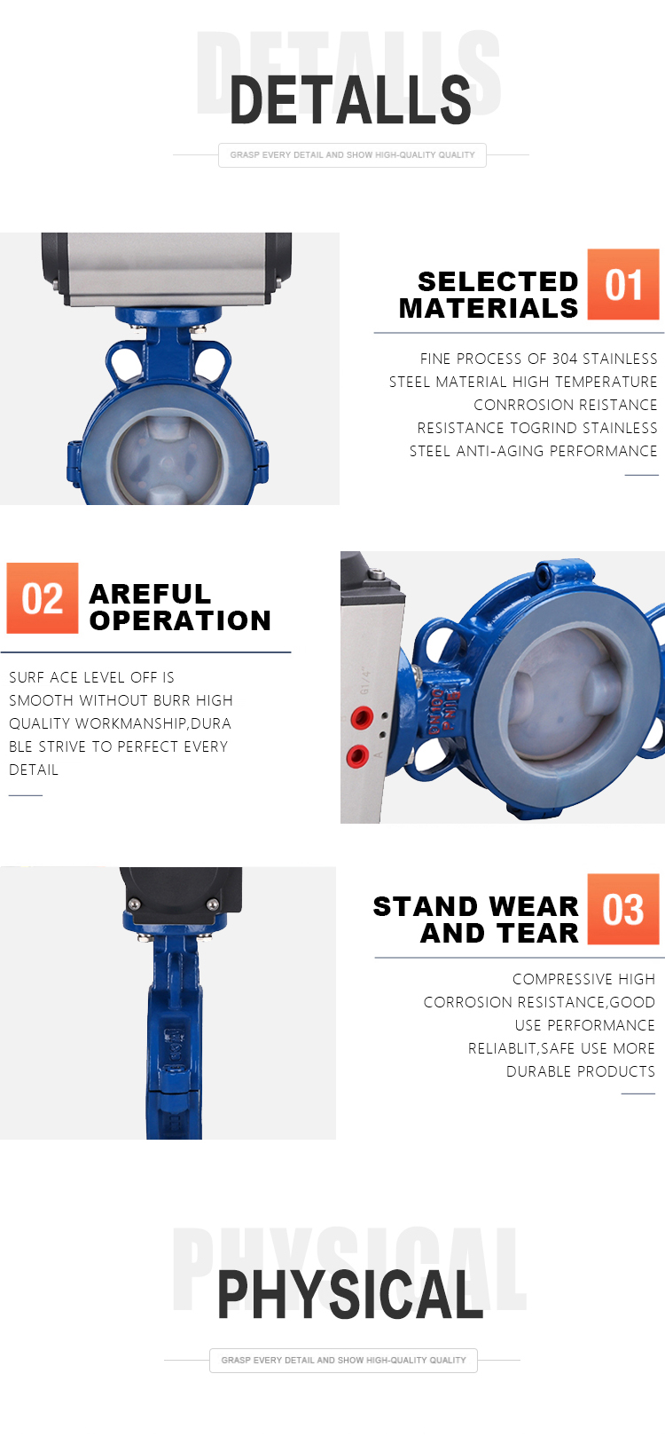 Products Name:YOULI Sulfuric Acid Hydrochloric Acid JIS 10K Pn16 WCB FEP F46 PFA F4 Pneumatic Actuator Fluorine Lined Wafer Butterfly Valve
