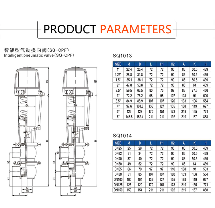 Products Name:YOULI Hygienic Food Grade Sanitary Stainless Steel 304 316L Intelligent Pneumatic LL Type Butt Welded Divert Valve